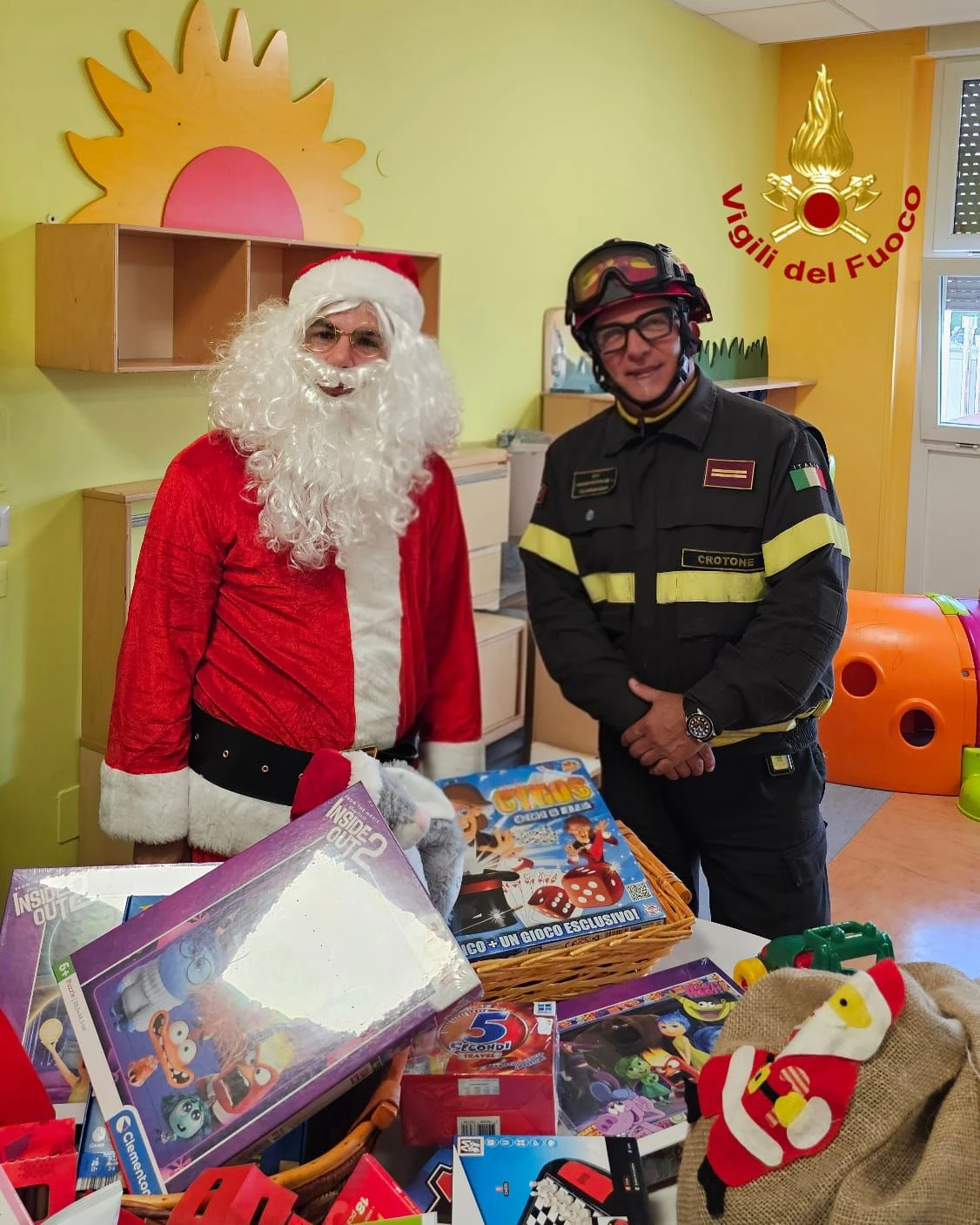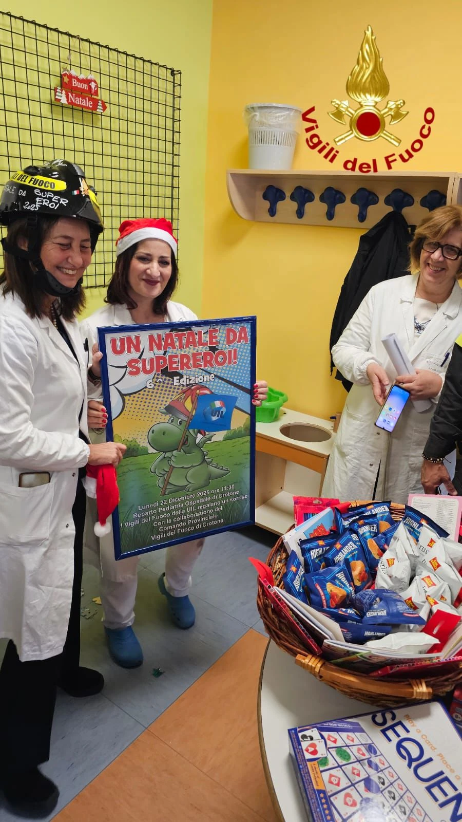 I Vigili del Fuoco del comando di Crotone, questa mattina, nell’ambito dell’iniziativa di solidarietà giunta alla 6^ edizione “Un natale da supereroi”, che rientra anche negli obiettivi della diffusione della cultura della sicurezza, hanno consegnato regali e dolcetti ai bambini ricoverati nel reparto di pediatria dell’ospedale San Giovanni di Dio.