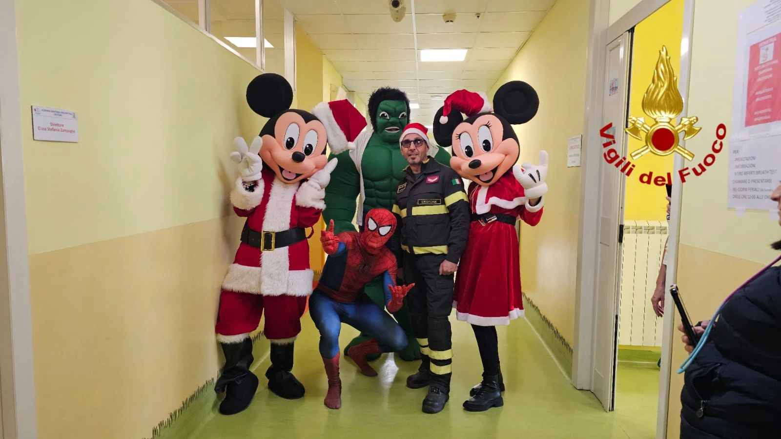 Ancora una volta i Vigili del Fuoco nelle vesti di Babbo Natale, accompagnati da personaggi Disney e supereroi Marvel. Con tale iniziativa, si è anche inteso ringraziare il personale del reparto pediatrico per la loro disponibilità e il loro impegno quotidiano.