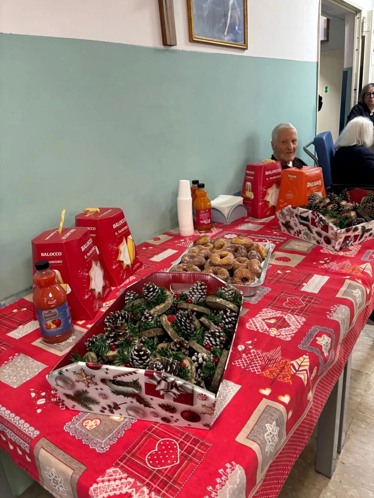 È stato un pomeriggio in compagnia, allietato dal suono della zampogna del giovane Francesco Lavigna , la merenda con dolci natalizi e gli omaggi da parte dell’associazione, realizzati dalla Vicepresidente Angela Mazzei, di oggetti realizzati con legna e pigne del Villaggio Fratta, località di montagna del Comune di Mesoraca.