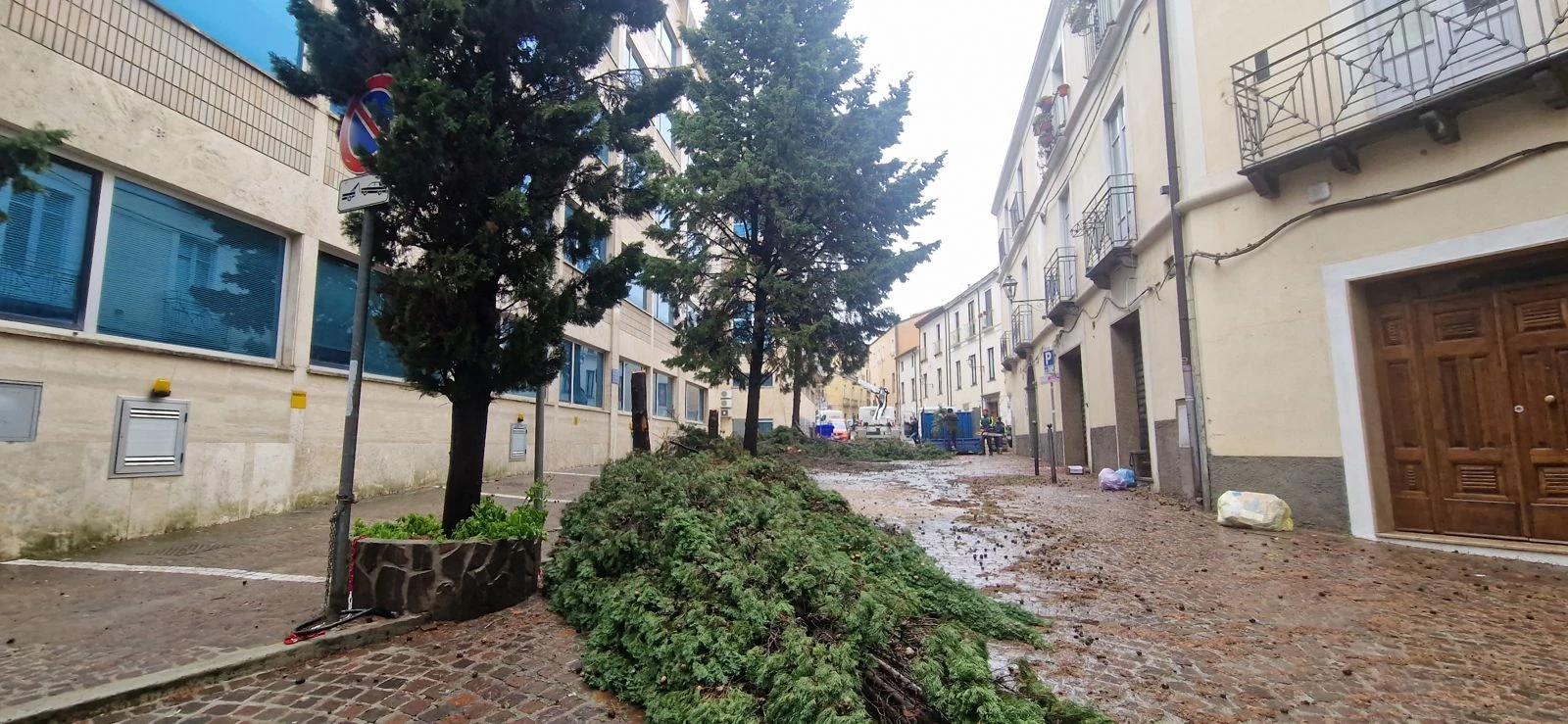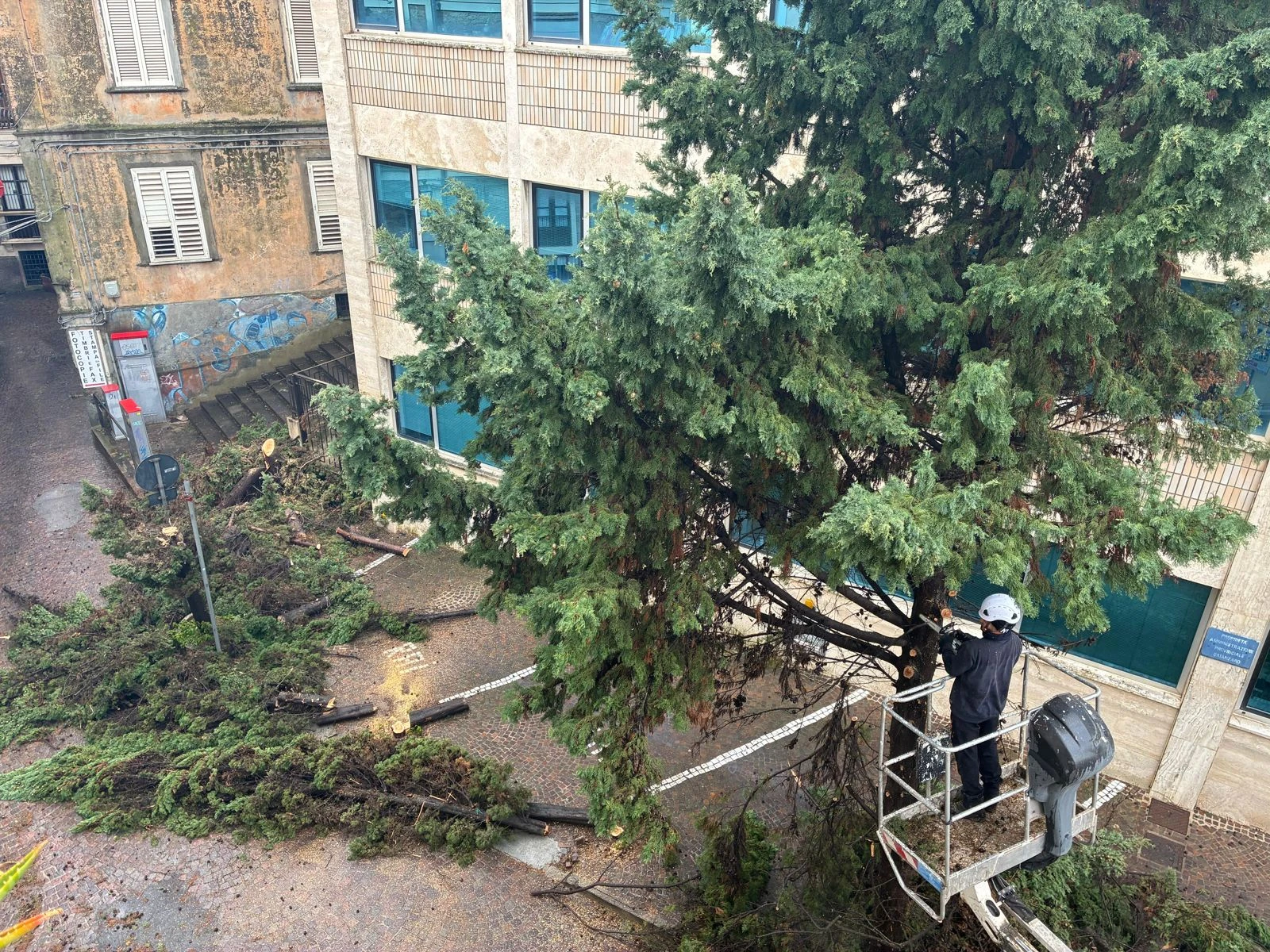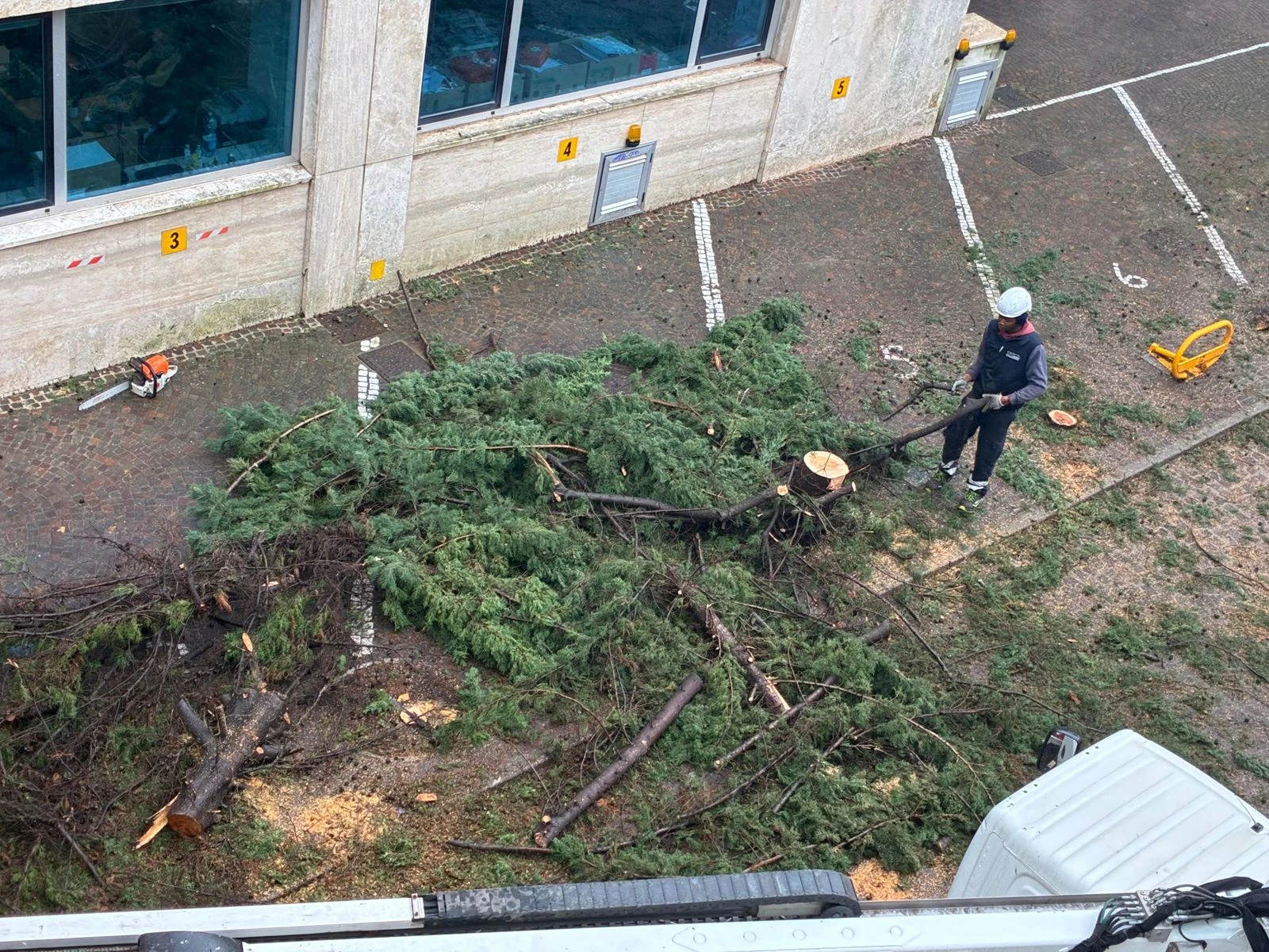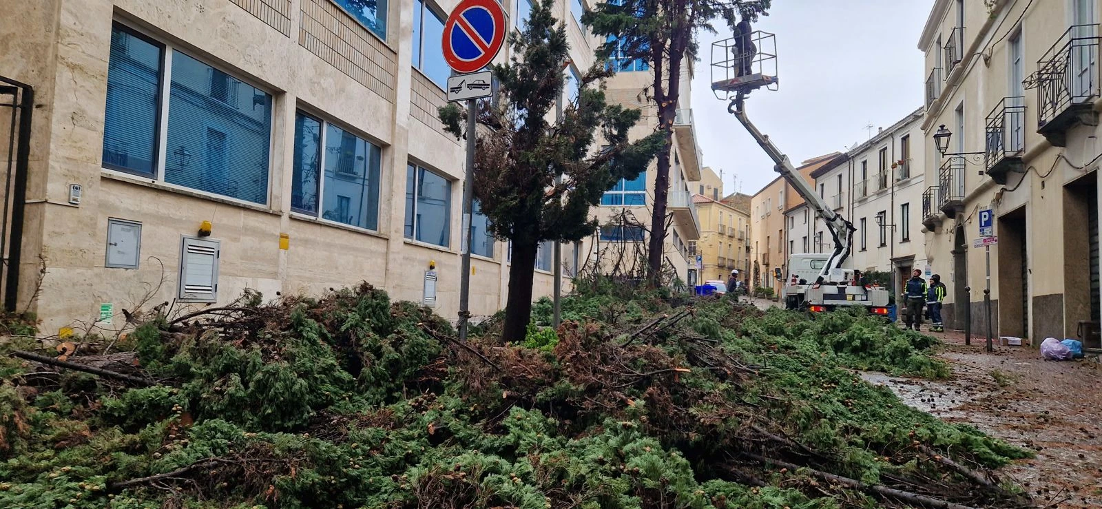 Dopo la caduta nella notte di uno degli alberi adiacenti al palazzo della Provincia, su via Raffaelli, (QUI LA NOTIZIA)l'ente ha dato disposizione di immediata e totale potatura di tutti gli alberi attigui. L'abbattimento delle piante d'alto fusto si è completata nella giornata odierna grazie all'intervento di una squadra specializzata attrezzata di carrello elevatore. Il traffico è stato ripristinato sebbene l'operazione di raccolta di fronde e fusti abbattuti si completerà soltanto domani. Sui social e sul posto, pareri contrastanti della cittadinanza che si è vista improvvisamente privata di un piccolo giardino e polmone verde cittadino con la viva speranza che nel breve tempo le piante vengano sostituite da altro e rinnovato verde pubblico .