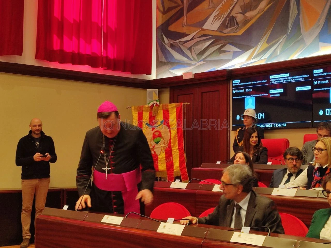"Ci sono parole che sembrano leggere, poi te le consegnano e capisci che pesano". È così che il Cardinale Domenico Battaglia, arcivescovo metropolita di Napoli, conosciuto soprattutto come Don Mimmo alle nostre latitudini, ha iniziato il suo discorso questa mattina durante il Consiglio Comunale tenutosi per conferirgli la cittadinanza onoraria di Catanzaro. La proposta avanzata dal Sindaco del capoluogo, Nicola Fiorita, è stata accolta all'unanimità quest'oggi all'interno di una gremita Aula Rossa di Palazzo De Nobili, con 23 voti favorevoli su altrettanti presenti, davanti a un uditorio pronto a salutare chi ha sempre portato avanti la propria missione sacerdotale "nel segno della più vera umanità, con sguardo amorevole verso i più deboli e fragili, donando loro un abbraccio forte e una risposta concreta", come sottolineato dal Presidente del Consiglio Comunale, Gian Michele Bosco.