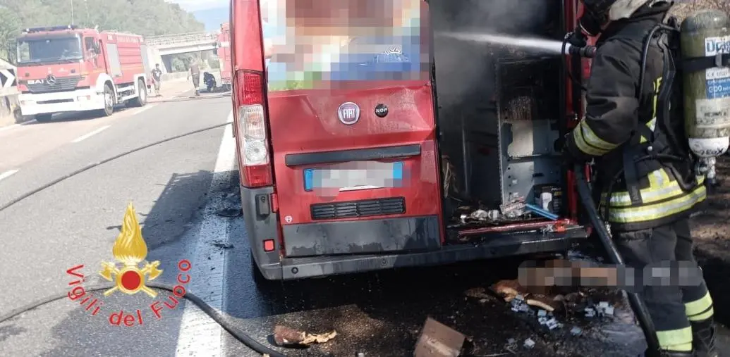 Sul posto una squadra di Vigili del fuoco del Comando di Catanzaro, distaccamento di Lamezia Terme, il cui intervento è valso alla completa estinzione dell'incendio che nel frattempo si era propagato anche alla vegetazione presente bordo strada. Le fiamme hanno danneggiato l'abitacolo del furgone e parte del materiale trasportato.