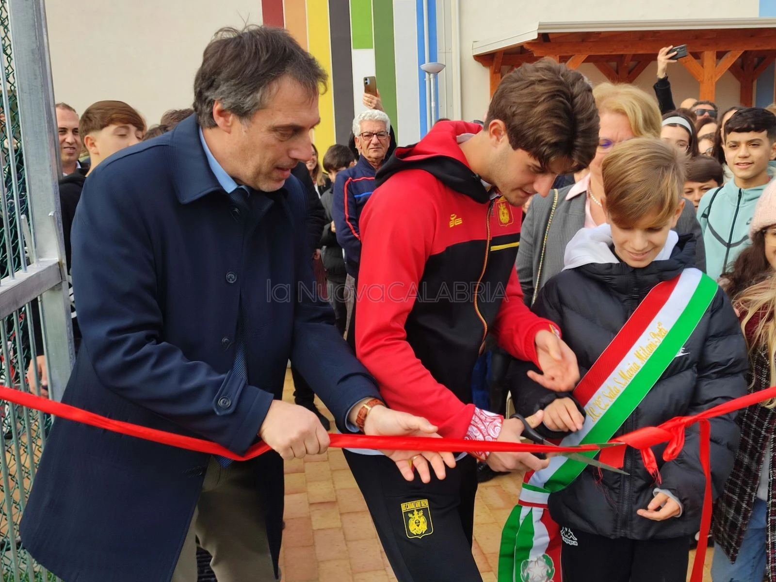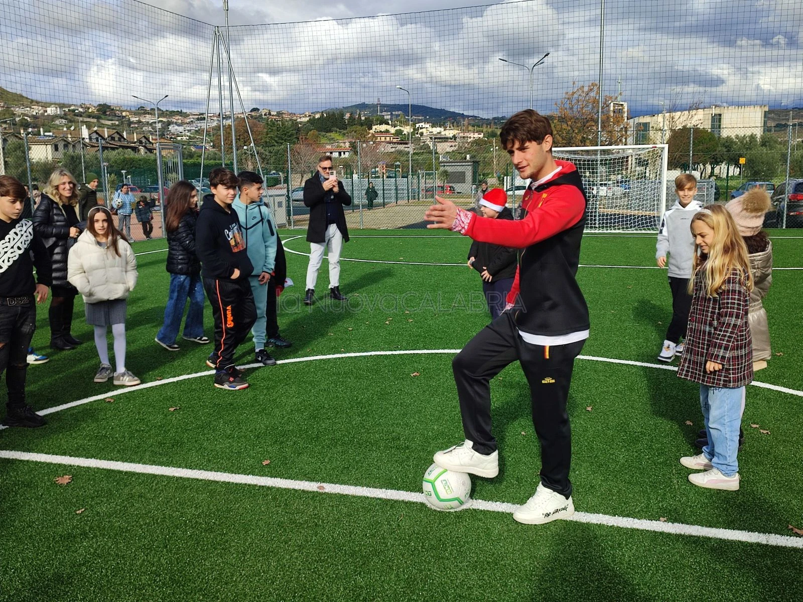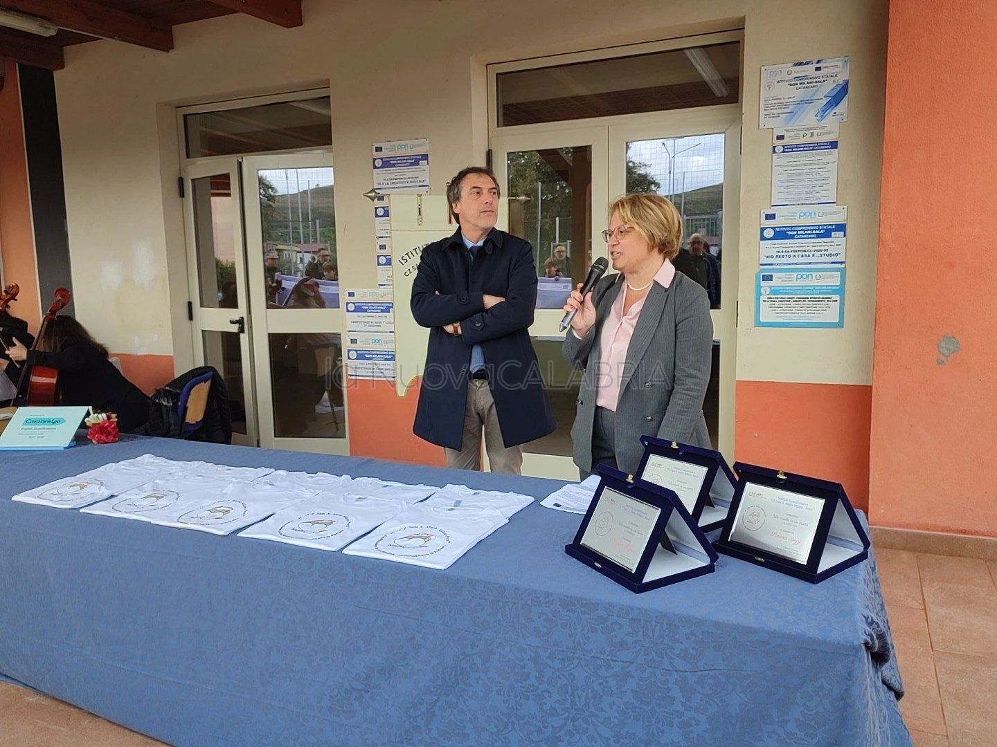 Sono stati poi premiate le alunne Sofia Foglia, Simona Iezzi e Anna Fiorentino, che hanno ideato e disegnato il nuovo logo della scuola, così come i ragazzi della 5°D della Scuola Primaria "Croci", creatori del motto "Coltiviamo la curiosità, seminiamo il futuro". Dopo la benedizione dell'edificio e la visita ai locali, è il momento della sorpresa di giornata: il giovane calciatore del Catanzaro Mattia Liberali ha fatto visita alla scuola per il consueto taglio del nastro del campetto, dando per primo un calcio ad un pallone sull'erbetta che presto sarà calcata dai ragazzi di Santo Janni. Questa inaugurazione rappresenta un regalo di Natale e un segnale di speranza e voglia di crescita per un quartiere e un'intera città.
