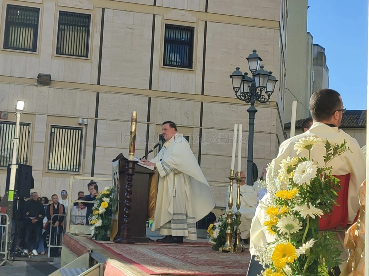 Sono numerosissimi i fedeli accorsi per rispondere all'appello dell'Arcivescovo: la piazza, situata proprio di fianco alla Basilica dell'Immacolata, offre un colpo d'occhio davvero impressionante. Soffia forte il vento sui presenti: "Sopportiamo questo segno, ci indica che il Signore ci vuole attivi e vivi", dichiara Maniago in apertura della celebrazione, che prosegue sui binari classici fino al termine del Vangelo, dopo il quale è stato letto il decreto di indizione della visita pastorale emanato lo scorso 2 aprile. "Entrando in contatto con gioie, preoccupazioni e attese della gente, il Vescovo mantiene contatti con il clero e gli altri membri del popolo di Dio, con l'occasione di richiamare i fedeli al rinnovamento della vita cristiana".
