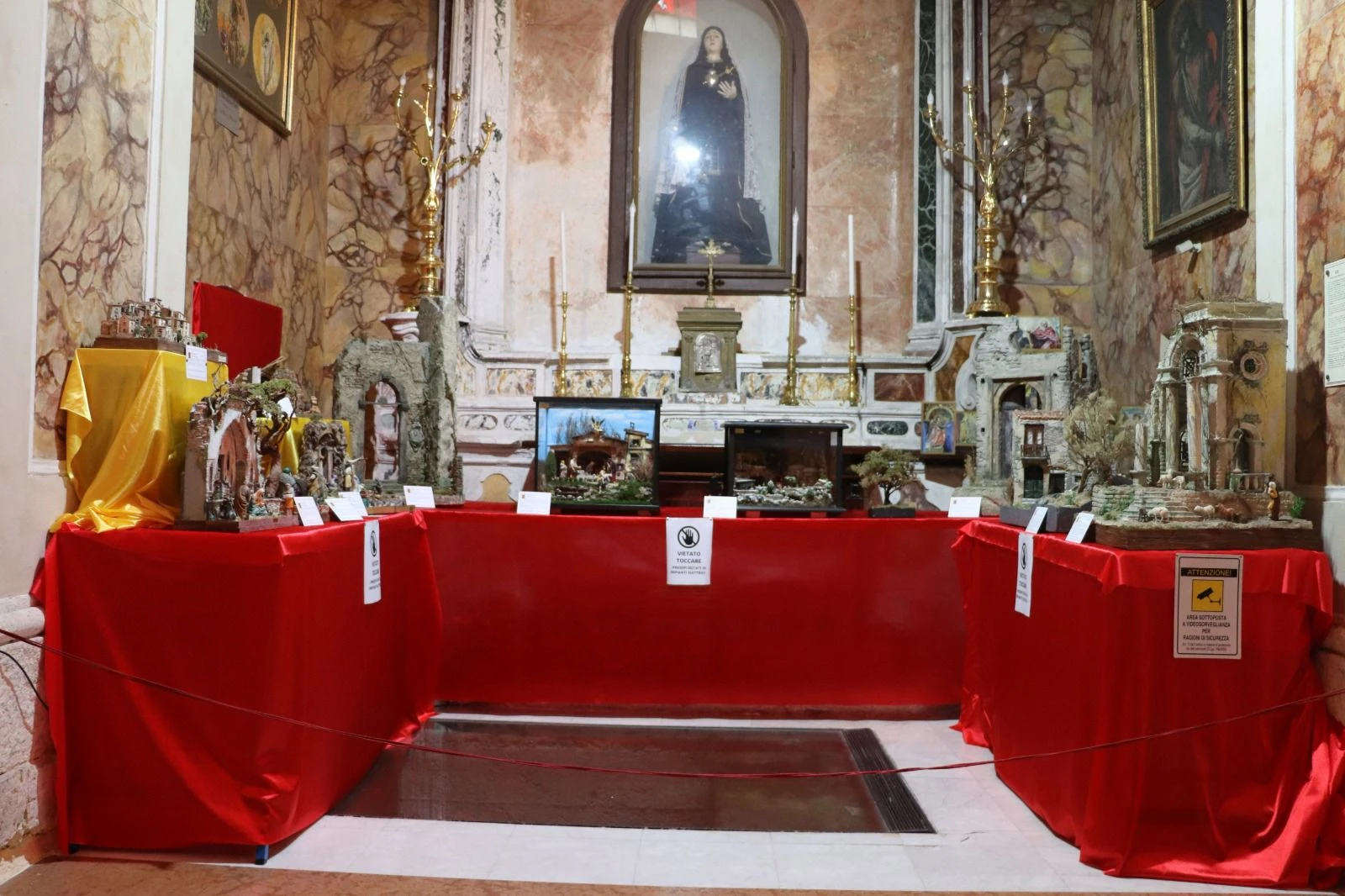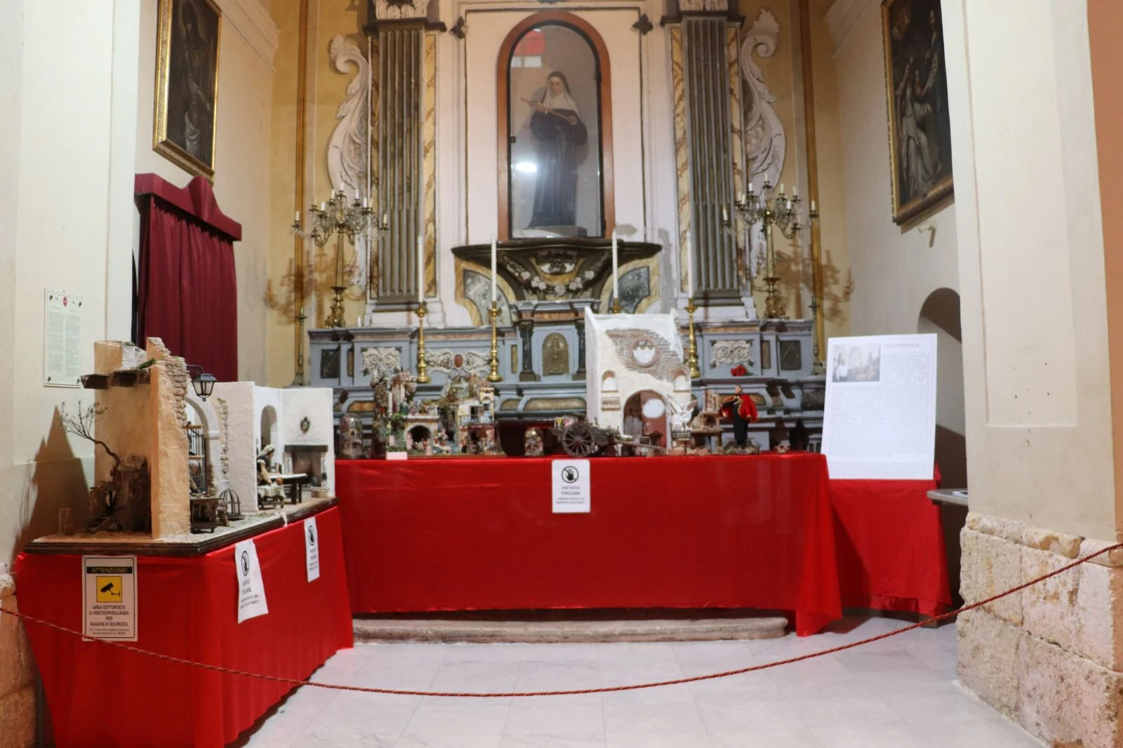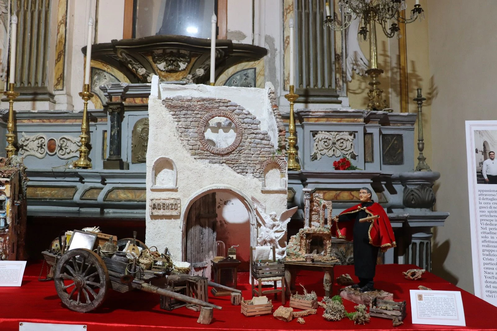 Percorrendo la mostra, ci ritroviamo nella calda penombra di una casa antica, dove il tempo sembra essersi fermato: un camino acceso in cui il fuoco crepita piano e si diffonde un calore familiare che abbraccia ogni cosa. In quell’atmosfera magica, donna Rosa, mamma di Enzo Rotella, è al lavoro, immortalata nell’atto di stendere l’impasto per il pane. Entrambe, Ciccio e Rosa, sono due figure realizzate in terracotta e animate da motorini che li rendono degli autentici pastori in movimento, che il caro Enzo realizzò quando ancora era in vita e rese ancora più vive, dall’amore del figlio-artista. A fare da contorno alle sue opere ci sono stati presepi napoletani, presepi popolari, presepi storici, ulivi secolari, ruderi, templi diroccati, miniature, una mostra varia e suggestiva in cui sono stati raccontati borghi, scorci, tradizioni e antichi mestieri, riprodotti con cura secondo le tecniche della tradizione presepiale, trasformando ogni angolo in un messaggio di fede e memoria, vero strumento di evangelizzazione. Ogni artista ha fatto sì che attraverso la propria opera, si creasse un attimo di riflessione, per tornare alle origini, nel luogo dove silenzio e semplicità riconducono l’osservatore al senso autentico delle cose, al valore profondo di ciò che resta.