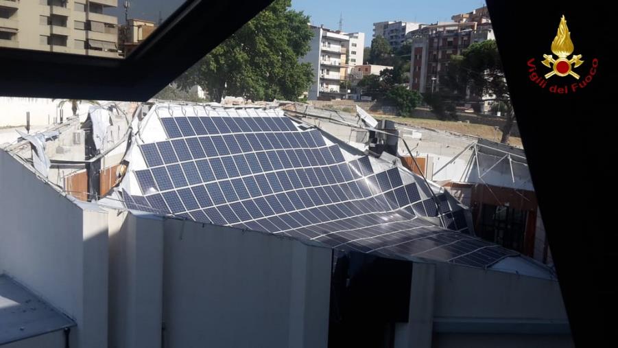 La copertura che aveva struttura portante in metallo si è accartocciata su se stessa cadendo all’interno dell’ampio locale.