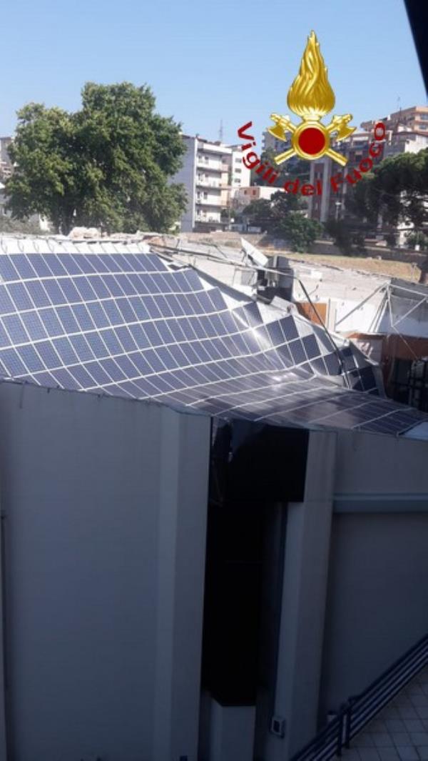 Sala Calipari presso palazzo Campanella del Consiglio Regionale della Calabria. I Vigili del Fuoco hanno inviato sul posto un funzionario, una squadra, un’autoscala ed il nucleo cinofili. Giunti sul posto i vigili hanno constatato che l’intera copertura della sala era crollata.