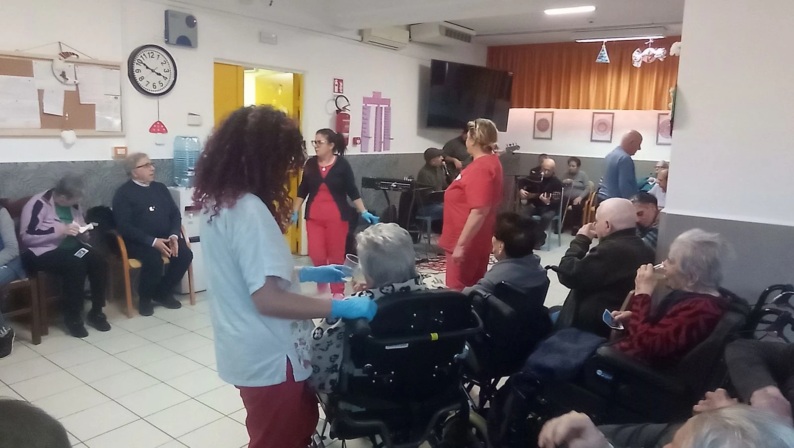 Molto chiaro don Alfonso Velonà: "Il Natale è la festa più importante per la Chiesa, l'amore di Dio che si incarna negli uomini, noi questo amore dobbiamo trasmetterlo agli altri facendo opere di bene". E quanto lavoro, amore e dedizione per ospitare persone anziane ammalate, con disagi e fragilità, ma anche giovani in difficoltà! Seduti sulle sedie a rotelle o in poltrona hanno atteso lo spettacolo musicale offerto dalla Proloco, in questi luoghi di cura e spesso di sofferenza dove è arrivato il sorriso di speranza del Natale, racchiuso nella promessa del Presepe. Politici, burocrati, chi ha potere decisionale dovrebbe visitare strutture di questo tipo, per capire il grande lavoro che viene portato avanti a beneficio di queste persone, fra difficoltà inimmaginabili. Con al centro sempre la persona. Uomini e donne soli che diventano famiglia, comunità. Come dare sollievo alle loro sofferenze? Con le cure, un sorriso, un ballo, una canzone, un abbraccio, una carezza. Umanità. E così Michele Ligarò, Ezio Froio e Antonio Caligiuri, grazie all'iniziativa del presidente della Pro Loco Angelo Grano, con la loro musica hanno portato un momento di spensieratezza, coinvolgendo tutti con la potenza evocativa della canzoni: Calabrisella, Rose Rosse, Romagna mia, Piccolo Fiore, Inno di San Michele di Michele Ligarò.