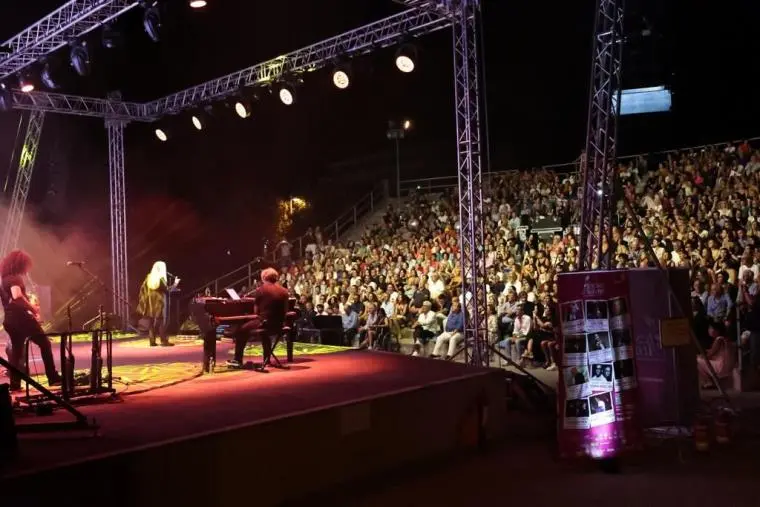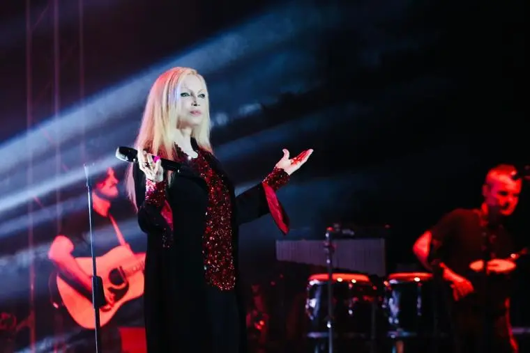 Una Barbie. Capelli lunghi biondi, sguardo dolcissimo, ammantata di cristalli Swarovski, prima rossi, poi bianchi, che rimandano alle luci del Canal Grande, è lei, eterea ma inossidabile nelle sue 75 primavere, Patty Pravo, che infiamma il pubblico di Soverato.