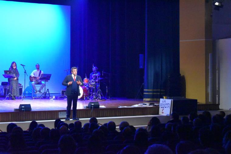 Musica e comicità, “La macchina della felicità” è intrecciata all’omonimo romanzo scritto da Flavio Insinna, ed è uno spettacolo che tenta di regalare la ricetta per essere felici che viene svelata nella sua completezza alla fine, quando suona la campanella di fine ricreazione.
