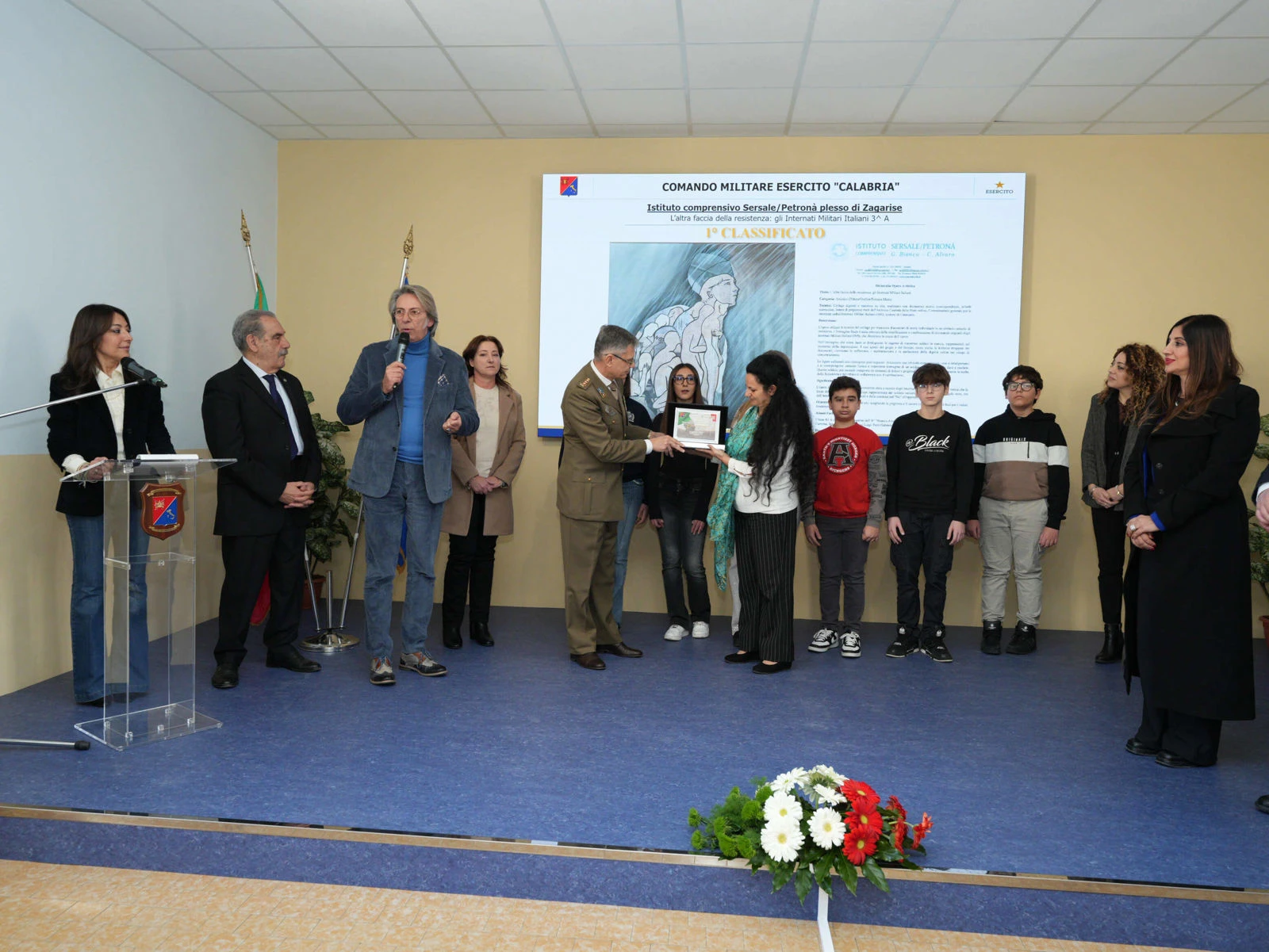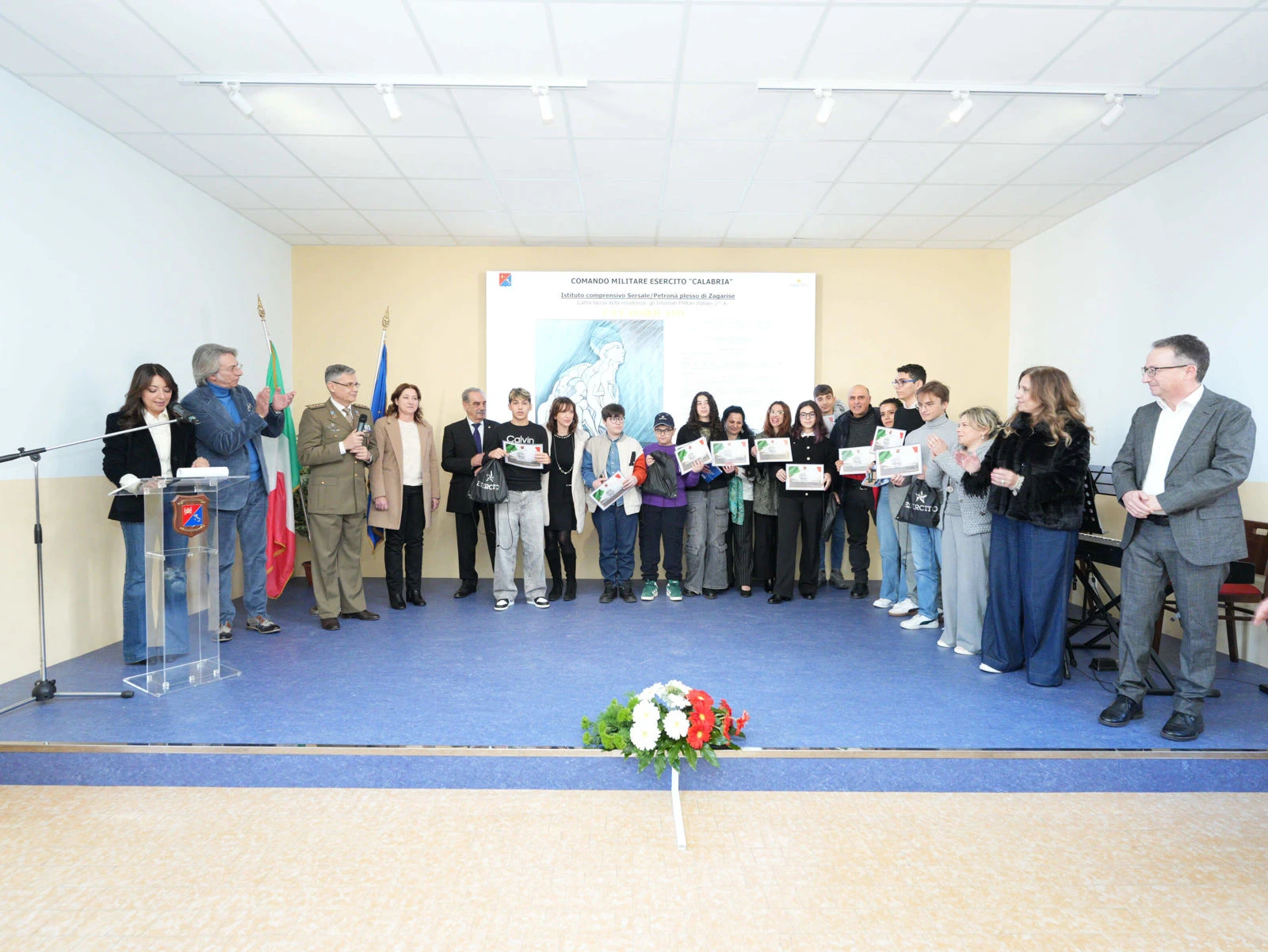 La giornata è proseguita con la premiazione della seconda edizione del Premio “Giorno della Memoria – I giovani ricordano”, concorso letterario e artistico rivolto agli studenti delle scuole della provincia di Catanzaro. Hanno partecipato all’iniziativa 9 istituti scolastici, con la presentazione di 50 elaborati tra lavori letterari, artistici e multimediali, realizzati anche grazie alla consultazione della documentazione storica custodita dall’Ufficio Documentale del Comando Militare Esercito “Calabria”.