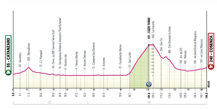 La quarta tappa, con start dal Capoluogo, terminerà a Cosenza per un totale di 144 km.