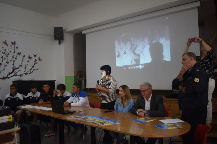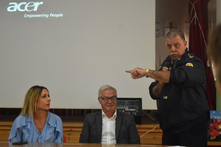 Quest’anno il progetto ha come tema centrale l’educazione stradale e per l’occasione di stamattina gli studenti hanno partecipato ad una lezione sulla sicurezza in strada tenuta dal Colonnello della Polizia Stradale, Franco Basile, che ha coinvolto i ragazzi con delle domande sulle nozioni basilari della guida stradale, come la segnaletica. Al dirigente scolastico dell’istituto, Anna Maria Rotella, è stata consegnata una patente simbolica di questa giornata.