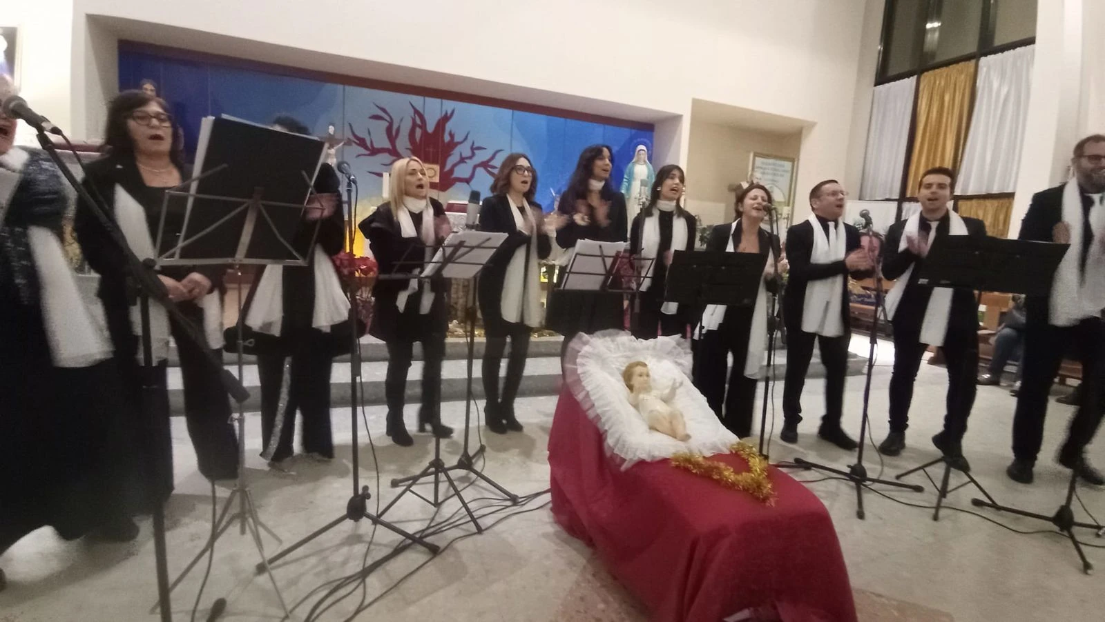 La gioia del Natale esaltata dalla musica, anzi, ancora meglio, dai canti del coro nella chiesa della parrocchia San Massimiliano Maria Kolbe, amorevolmente guidata da Don Giovanni Scarpino, al Parco Commerciale Le Fontane di Catanzaro. Un Concerto di Natale "Only Voices" con al centro, ai piedi dell'altare, il Bambinello che ha scaldato i cuori. Ecco creata così semplicemente l'autentica atmosfera natalizia, quasi introvabile altrove, invano cercata fra la musica ad alto volume davanti ai locali, nonostante addobbi, ghirlande e lucine colorate intermittenti, comportamenti e nuove abitudini che talvolta danno più un sapore carnevalesco che natalizio. Ma in chiesa no, tutto il senso del Natale è racchiuso lì, in quel bambino nudo, che apre tutte le nostre speranze, tutte le speranze del mondo. E la preghiera silenziosa del cuore prende voce, si fa canto, come ben descritto da Don Giovanni Scarpino. L'idea di trasformare un gruppo parrocchiale in un coro polifonico a cappella è venuta al Maestro Massimo Lapenna, da più di 35 anni specializzato nella formazione e direzione di gruppi vocali gospel, senza l' ausilio di strumenti musicali. Da assiduo frequentatore della parrocchia San Massimiliano Kolbe - come ha spiegato don Giovanni Scarpino - ha pensato di poter offrire il suo contributo per migliorare la liturgia, perfezionando un gruppo in un coro a più voci. È scaturita così la voglia dei coristi di cimentarsi nella realizzazione di un Concerto di Natale, che comprendesse canti della tradizione e canti internazionali in stile gospel. L' impegno profuso per raggiungere un simile traguardo è stato importante, ognuno ha contribuito al risultato finale.
