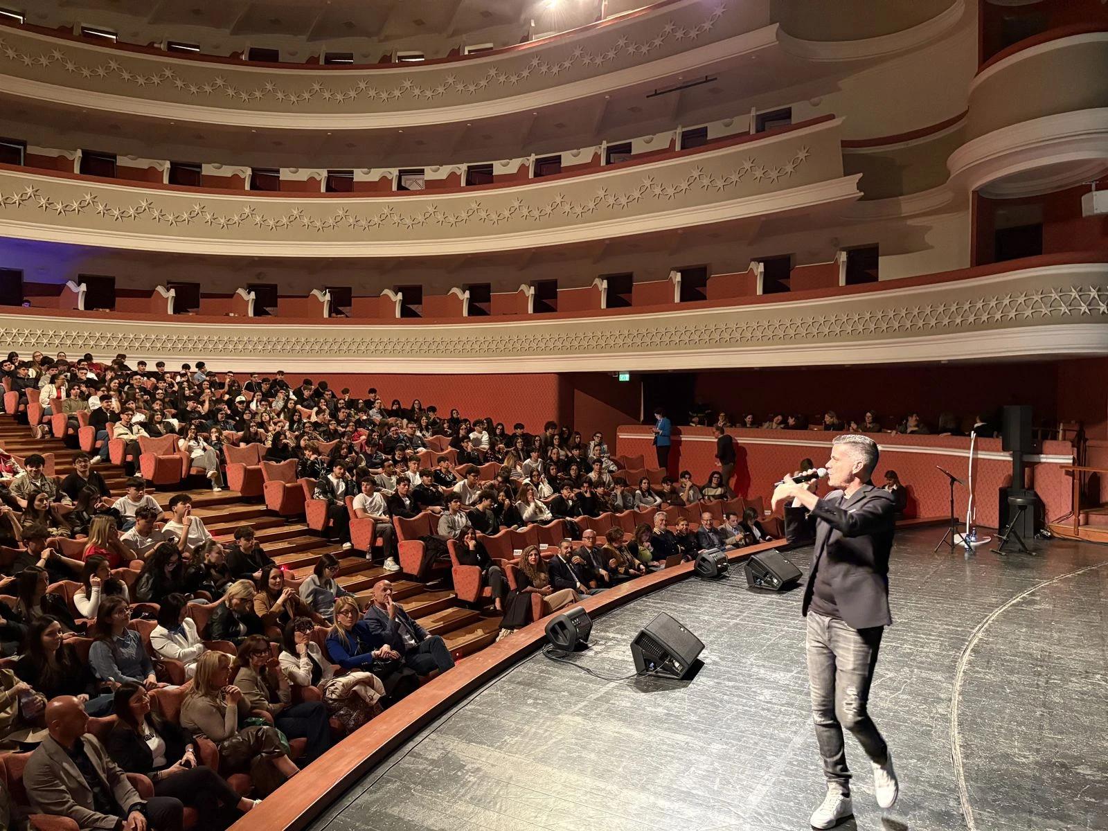 Ad accendere l'entusiasmo in platea ci ha pensato Lorenzo Baglioni, salito sul palco per mescolare musica e ricordi di carriera, finendo per far cantare a centinaia di studenti il suo tormentone sul congiuntivo. Non sono mancati però i momenti di riflessione istituzionale. Il Prefetto di Catanzaro, Castrese De Rosa, ha scherzato sul suo profilo da “prefetto social”, sottolineando che con i ragazzi bisogna parlare la stessa lingua. “La sicurezza si fa partendo dalle scuole” — avverte De Rosa davanti a un teatro gremito — “e ieri, con il dottor Varone, abbiamo salvato 38 lavoratori che stavano perdendo il posto: il prefetto si occupa anche di questi problemi concreti”.