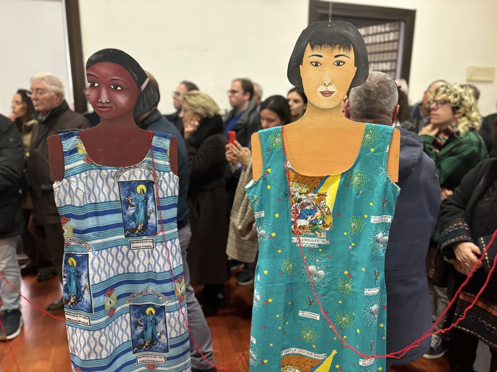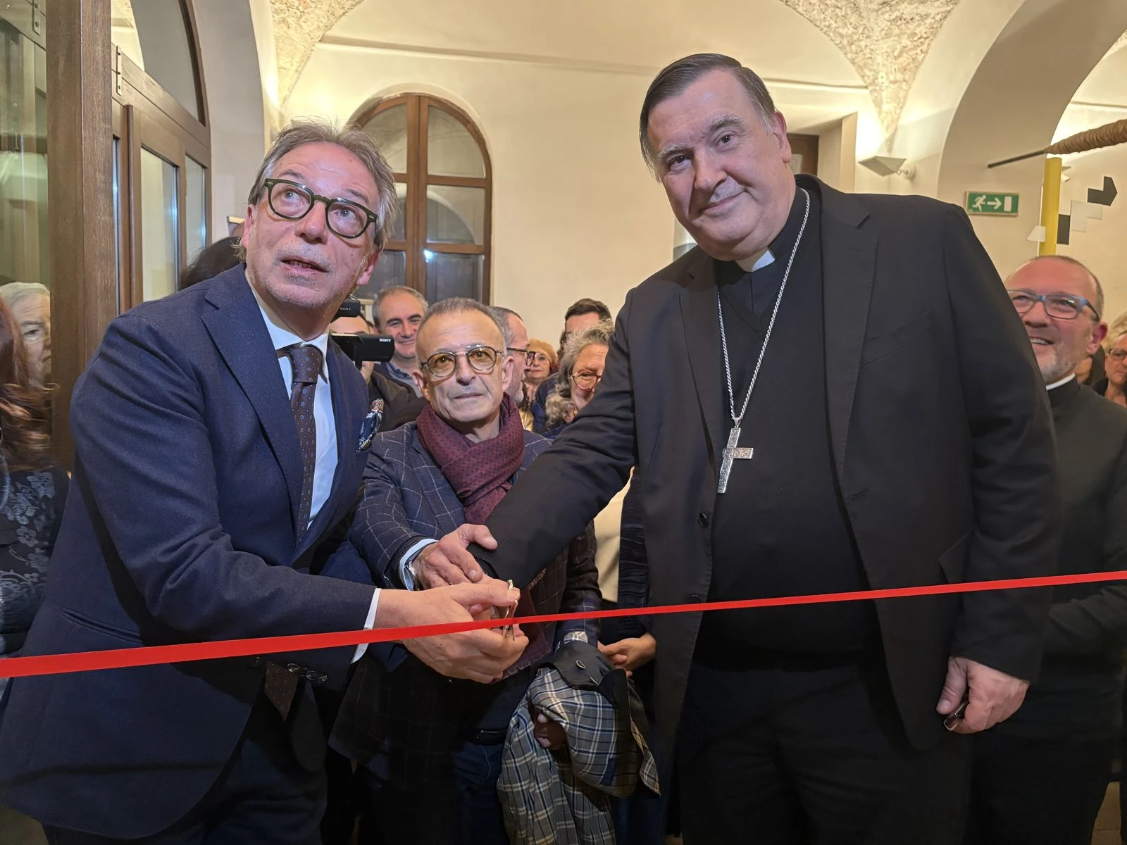 Terminato il confronto, la benedizione e la preghiera di Mons. Maniago precedono il taglio del nastro. Poi le sale si aprono. Il pubblico segue Lara Caccia che racconta le opere, gli artisti e le scelte fatte.
