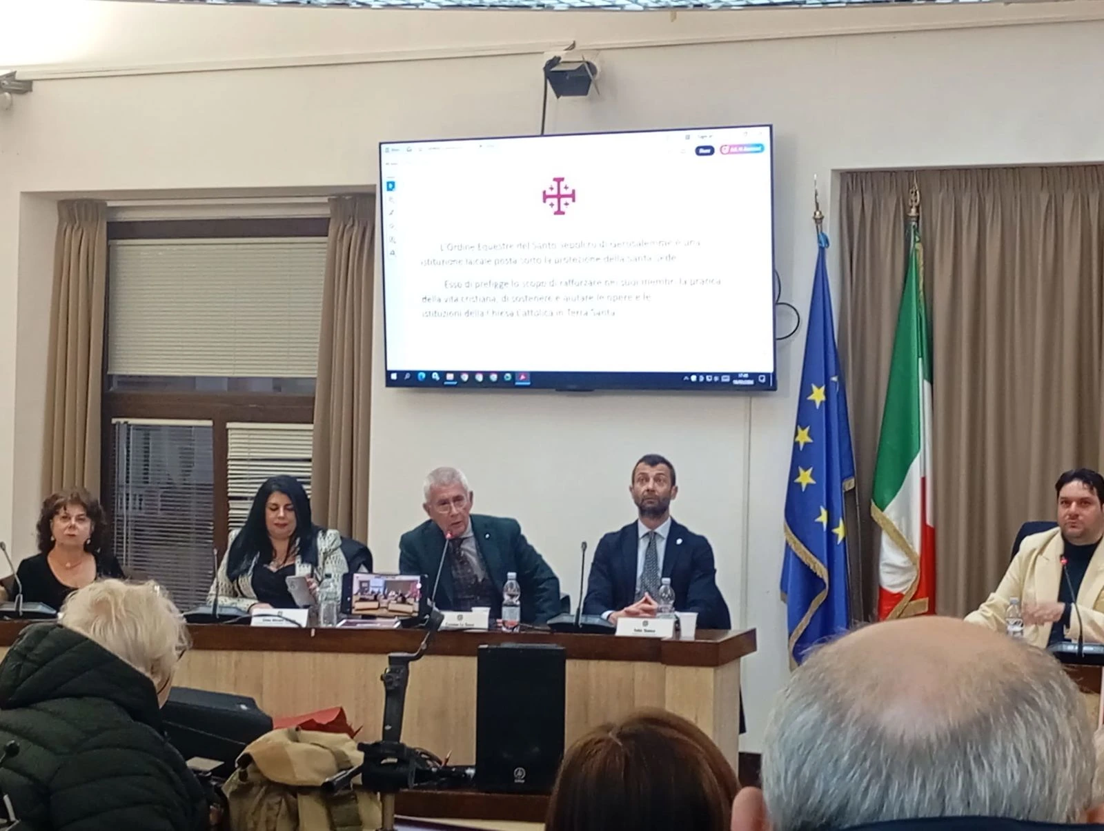 L’Avv. Prof.ssa Elena Morano Cinque, Dama della Reale Arciconfraternita SS Giovanni Battista ed Evangelista dei Cavalieri di Malta ad honorem e Coordinatrice dell’Osservatorio Deontologico della Camera Civile di Catanzaro, ha analizzato il ruolo giuridico degli ordini come enti morali al servizio di merito, uguaglianza e solidarietà costituzionali, toccando associazioni non riconosciute e deontologia. La Prof.ssa Cecilia Gugliuzzo, docente di Latino e Greco al Liceo Classico “Pitagora” di Crotone (specializzata in indirizzo archeologico), ha ripercorso il cavaliere dalle origini greche (ἱππεύς) all’eques romano, fino alla trasformazione medievale, umanistica e rinascimentale in simbolo di virtù morali, umane e religiose. Hanno arricchito il dibattito rappresentanti di ordini storici: Cav. di Giustizia SMOCSG Nob. Dr. Candido Francica Ajossa (Vice Delegato Calabria del Sovrano Militare Ordine Costantiniano di San Giorgio), Gr. Uff. OESSG Dr. Carmine La Greca (Presidente Sezione OESSG Catanzaro-Crotone) e Cav. M.P.A. SMOCSG Prof. Roberto M. Naso Naccari Carlizzi (docente di Storia Moderna alla SSML “Campus dello Stretto”, che ha intrecciato tradizione cavalleresca e Unione Europea).