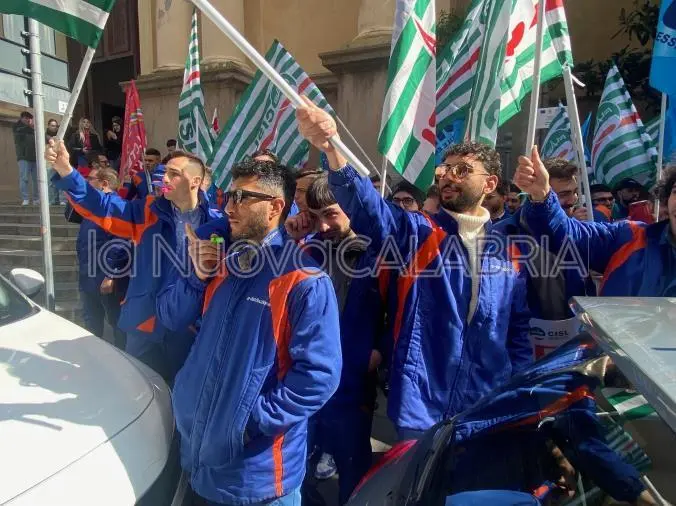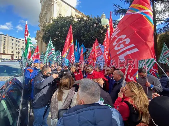 Oltre un centinaio i lavoratori in tuta blu che, con il sostegno dei segretari generali regionali di Cgil, Cisl, Uil, Angelo Sposato, Tonino. Russo e Santo Biondo e, per Filctem. Flaei e Uiltec, i segretari generali Calabria, Francesco Gatto, Antonino Mallone e Vincenzo Celi, hanno affollato i giardini antistanti il Palazzo della Prefettura.