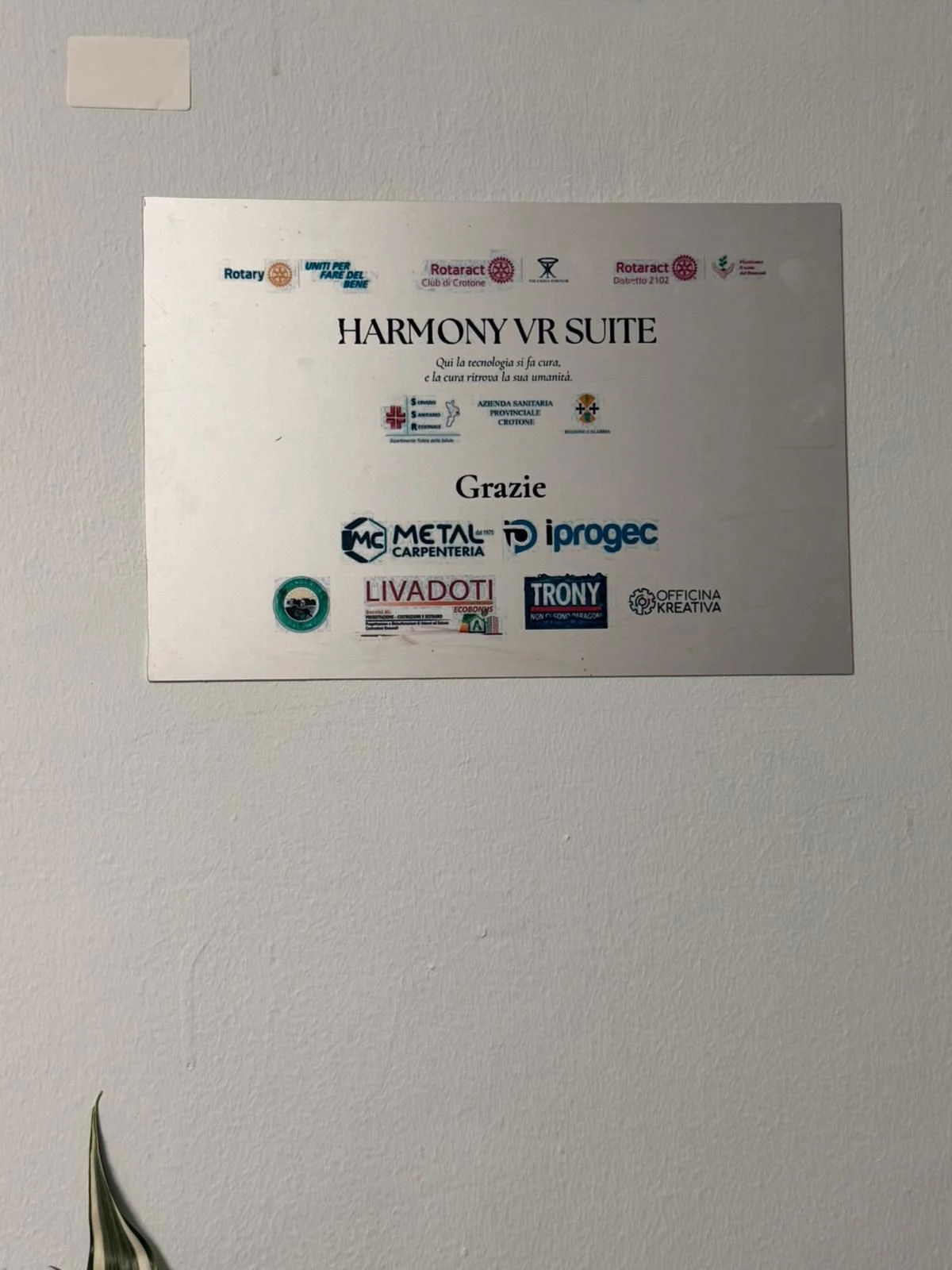 La realizzazione della Harmony VR Suite è il frutto di una proficua sinergia tra l’Azienda Sanitaria Provinciale e il Rotaract Club di Crotone, che ha promosso l'iniziativa trovando il supporto del Distretto 2102. Il progetto ha trovato compimento grazie al fondamentale sostegno di diverse realtà imprenditoriali del territorio, che con sensibilità hanno contribuito a dotare il presidio ospedaliero di uno strumento terapeutico innovativo e replicabile su scala nazionale come modello di eccellenza.