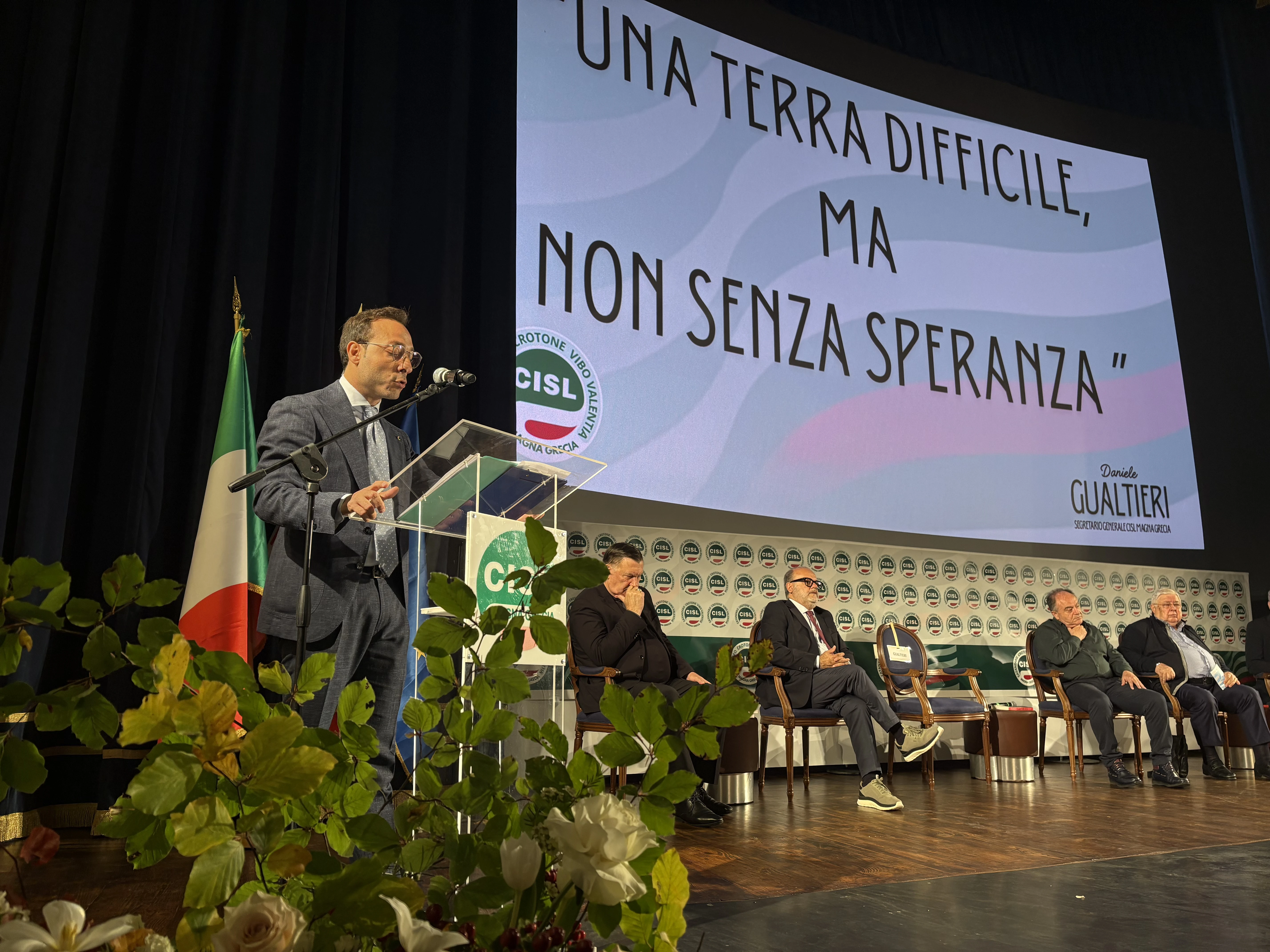 Nel suo intervento introduttivo, Gualtieri ha parlato ai ragazzi con un tono diretto e appassionato, invitandoli a riconoscere nella legalità “un modo di vivere, non una materia di scuola”. Ha sottolineato come l’obiettivo della CISL sia “costruire una rete di responsabilità condivise tra istituzioni, scuola, famiglie e lavoro”, aggiungendo che “questa terra ha bisogno di voi, di giovani capaci di dire no quando serve, di scegliere la parte giusta, di cambiare la realtà partendo dai gesti quotidiani”. Rivolgendosi infine agli studenti, ha detto: “Non siamo qui per un convegno formale, ma per chiederci insieme cosa significa vivere in questa terra e scegliere da che parte stare. Oggi abbiamo parlato, ma da domani sarete voi a scrivere il seguito di questa storia.”