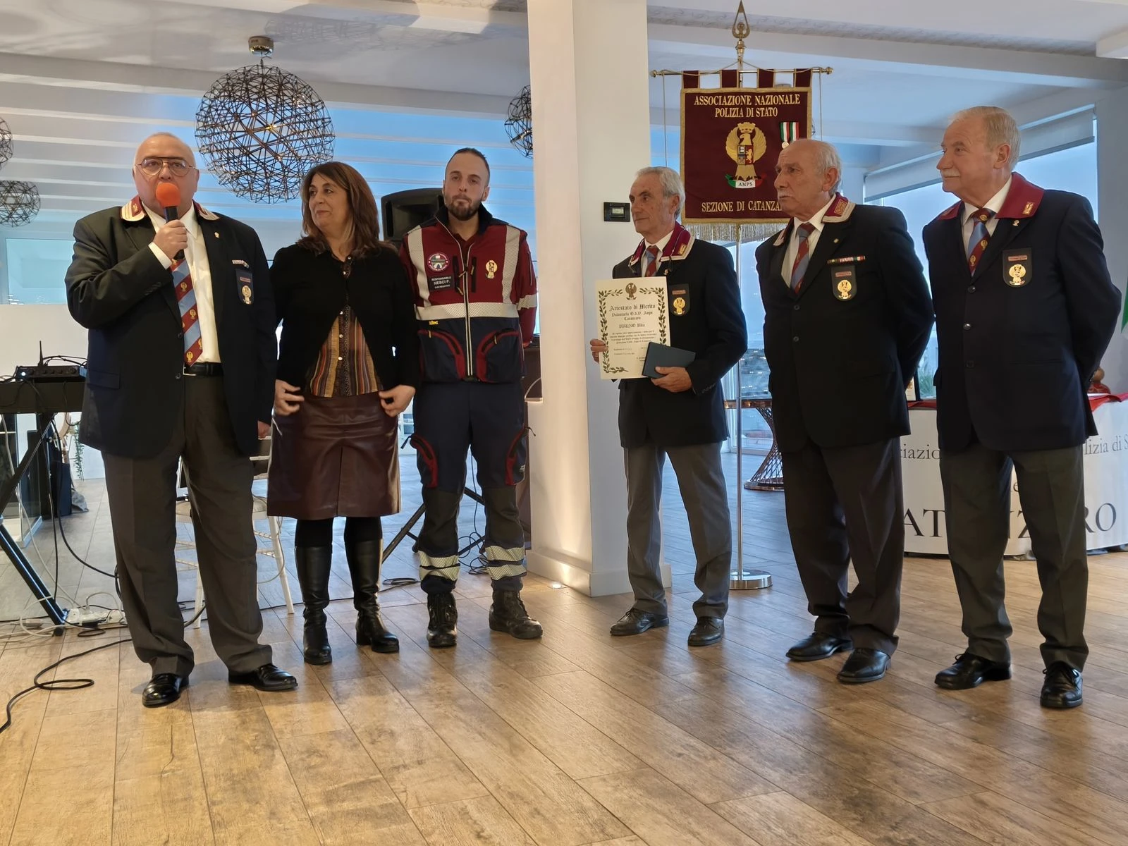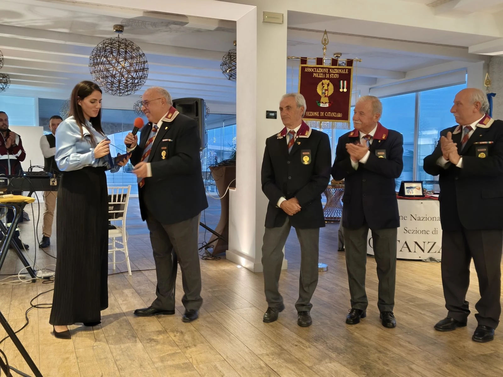 A fare gli onori della manifestazione il Presidente della Sezione di Catanzaro Sostituto Commissario della PdS in congedo Giovanni Romeo, affiancato dal Vice Presidente Ispettore Superiore in congedo Giuseppe Scarpino e dal Segretario Economo Sovrintendente della Polizia di Stato in congedo Giuseppe Cannistrà.