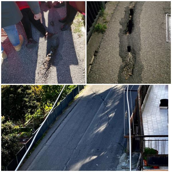 In questi anni, questo tratto di strada che porta gli anziani a raggiungere gli unici negozi presenti in zona, è in continuo dissesto, non è presente più un marciapiede ed è evidente l’abbassamento del manto stradale che fa presagire un crollo del tratto di strada verso l’area sottostante che conduce alla stazione delle Ferrovie della Calabria.