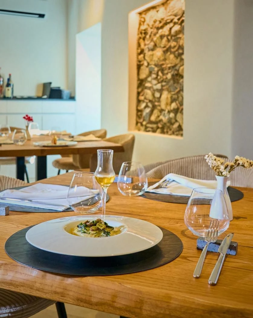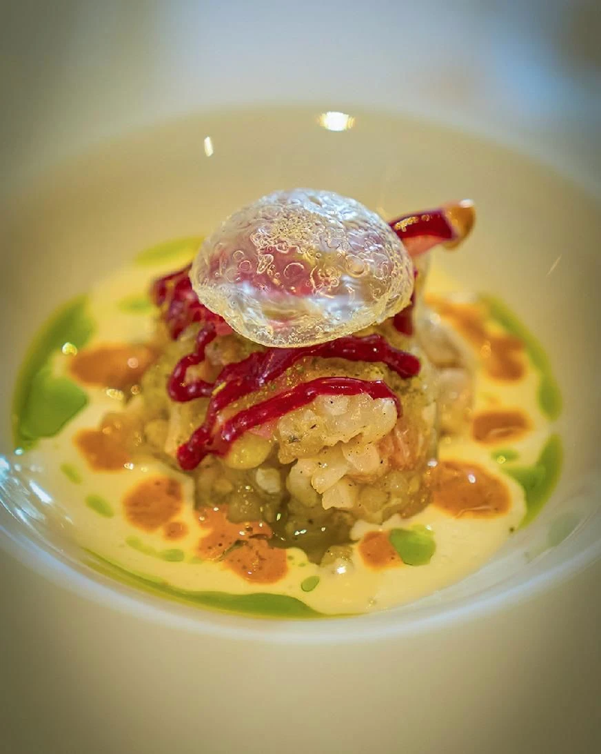 Da un piccolo disco d'anguria Francesco riesce a realizzare un dessert delizioso, dai funghi porcini un gelato sublime. Riesce a "calabresizzare" il tipico carciofo romano con l'aggiunta di polvere di liquirizia e gambero o scampo locale. Da provare la cipolla ripiena di manzo e salsiccia, accompagnata da crema di patate, tartare di pecora, olio al finocchietto e olio alla nduja o, tra i primi piatti, il "bottone" ripieno con pescato della settimana e patate alla cenere. Piatto forte anche "Un secondo per respirare": diaframma di vitello accompagnato da melanzane in varie consistenze e ricotta affumicata. Accanto alle carni e al pescato locale, c'è spazio anche per alcuni piatti vegetariani, su tutti il risotto mirtilli e kefir. I dolci non ve li sveliamo: divini.