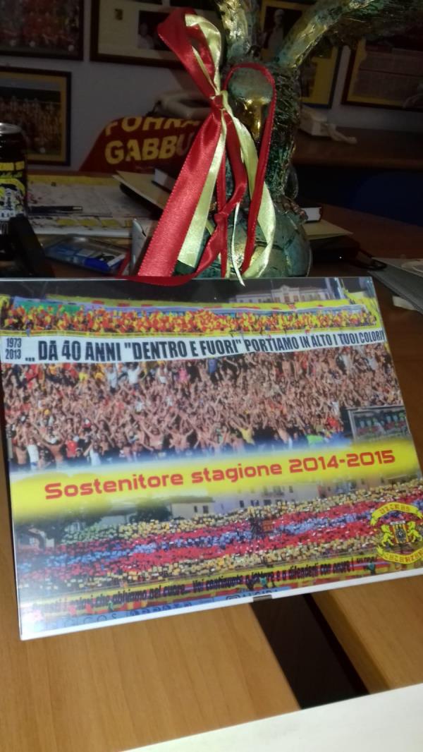 Il presidente è un’icona della tifoseria organizzata giallorossa. Fondatore del Catanzaro club nel 1979 ha seguito la squadra in lungo e in largo, ha visto passare tanti presidenti, centinaia di giocatori dalla serie A alla serie C, innumerevoli tifosi e militanti del movimento ultras presenti e passati, momenti bui ed esaltanti, ma lui è ancora lì, al suo posto, nella sede del Catanzaro club che somiglia ad un vero e proprio museo. Visitarla con lui significa calarsi nella storia del Catanzaro calcio fino ai giorni nostri. Sempre cordiale e ironico e anche un po’ testone, come recita una dedica di Massimo Palanca, O’Rey, simpaticamente impressa su una vecchia foto esposta in sede, ostinatamente tifoso, a volte anche controcorrente ma sempre e comunque presente. Così è Franco Rotella un tifosissimo che vorrebbe vedere il Catanzaro sempre in alto e commenta così il lavoro fatto fino ad ora dal Ds Lo Giudice che ritroviamo in diverse foto con la maglia del Catanzaro nel ruolo di terzino sinistro: “La squadra a me sembra buona, certo potrebbe diventare ottima con una ciliegina sulla torta a centrocampo. In avanti, l’acquisto di Magni mi sembra interessante e la qualità di Nicastro non dovrebbe essere in discussione. Forse sì, con un paio di ritocchi siamo quasi all’altezza del Bari”.