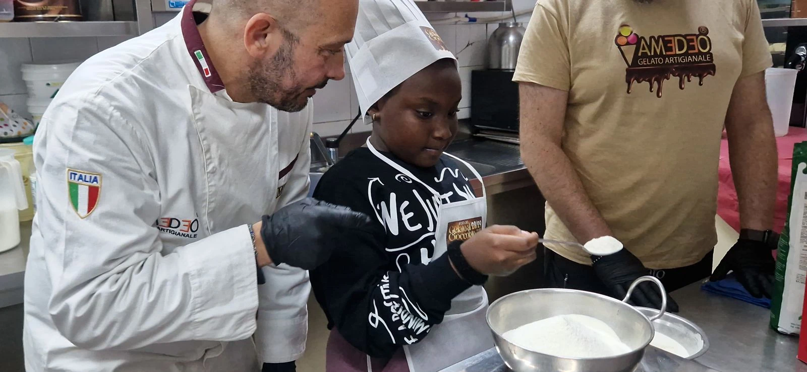 C'è un ingrediente segreto che rende il gelato al cioccolato di Amedeo speciale rispetto a tutti gli altri. E ve lo riveliamo in esclusiva. Anzi, a rivelarlo sono i bimbi che, quel gelato, in questi giorni, stanno imparando a farlo.
