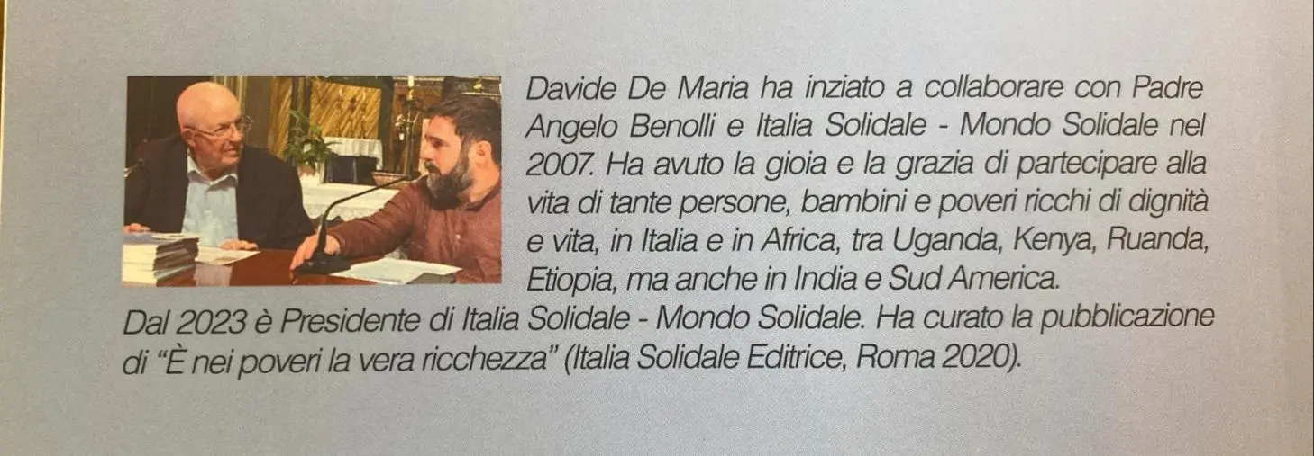"È sicuramente una delle parole che, negli ultimi anni, è stata più usata e purtroppo anche abusata - scrive De Maria - Si è arrivati al colmo che si parla di pace anche quando si vuole parlare di guerra e si fa la guerra parlando di pace'. Da qui, dunque, la necessità di testimoniare esperienze di pace autentica e profonda 'che inizia nel cuore inconscio di ogni persona e che poi, dal cuore e col cuore, diventa naturalmente missionaria per i fratelli' da Essere pace nel mondo"