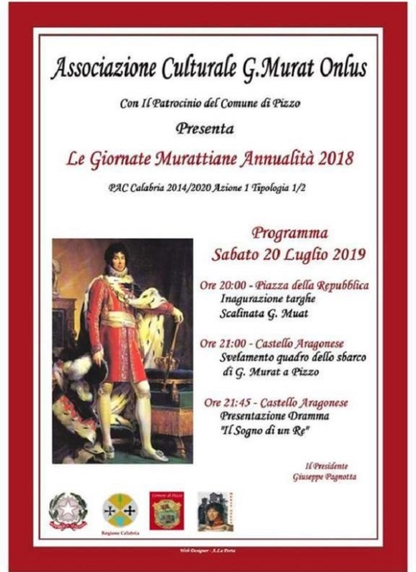 PIZZO - "La capacità emozionale di questa terra, catturata dalle pagine di un diario di viaggio ed immortalata nello scatto di uno smartphone per raccontare il patrimonio a 360 gradi: da quello delle tradizioni e culturale, con le chiese ed i tesori artistici di straordinaria particolarità; a quello paesaggistico che consente immersioni nel verde e su vette altissime e in pochi minuti, di raggiungere e tuffarsi nel Tirreno. La valorizzazione dei beni storici e culturali e la diffusione della conoscenza della Storia e dei personaggi che hanno contribuito a scriverla, come nel caso di Gioacchino Murat. Bellezza e conoscenza rappresentano il filo conduttore che legano tra loro gli appuntamenti della programmazione socio-culturale estiva 2019 di Pizzo proposta dall’Amministrazione Comunale in sinergia con la rete delle associazioni cittadine". È quanto fa sapere l’assessore alla cultura Giorgia Andolfi esprimendo soddisfazione anche a nome del Sindaco Gianluca Callipo per il successo di partecipazione fatto registrare per gli eventi culturali che hanno già scandito ed impreziosito queste prime settimane di luglio. Si arte domani con "Premiazione eccellenza di calabria – la calabria che lavora, si muove e si afferma", promosso dall’associazione Socialmente, patrocinato dal Consiglio Regionale della Calabria, dalla Camera di Commercio di Vibo Valentia e dall’Amministrazione Comunale, l’evento si terrà alle ore 19 di domani, nel Castello Murat. I lavori saranno coordinati dalla conduttrice televisiva ed attrice Larissa Volpentesta, insieme all’assessore Andolfi. Interverranno i consiglieri regionali Domenico Battaglia, Franco Sergio e Michele Mirabello, il Presidente della Camera di Commercio di Vibo Valentia Sebastiano Caffo, il Sindaco e Presidente dell’Anci Calabria Gianluca Callipo ed il Presidente del Consiglio della Regione Calabria Nicola Irto. Il prossimo appuntamento e sabato: "Le giornate Murattiane", alle 20 in Piazza della Repubblica dove sarà inaugurata la targa della scalinata Murat. A seguire, alle 21 al Castello Aragonese sarà scoperto il quadro dello sbarco di Gioacchino Murat a Pizzo. Alle 21 e 45 si terrà, infine, la presentazione del dramma Il sogno di un Re. L’evento è a cura dell’associazione culturale Gioacchino Murat Onlus presieduta dal Giuseppe Pagnotta. Domenica dalle 18.30 al Castello Murat, sarà la volta di "La Calabria sul comò" evento patrocinato dall’Amministrazione Comunale e promosso in collaborazione con le associazioni Nish, Kairos e Streusa. Racconti di viaggio e non solo. Coordinati da Erica Tuselli, ne discutono e condividono il racconto Giuseppe Paletta.