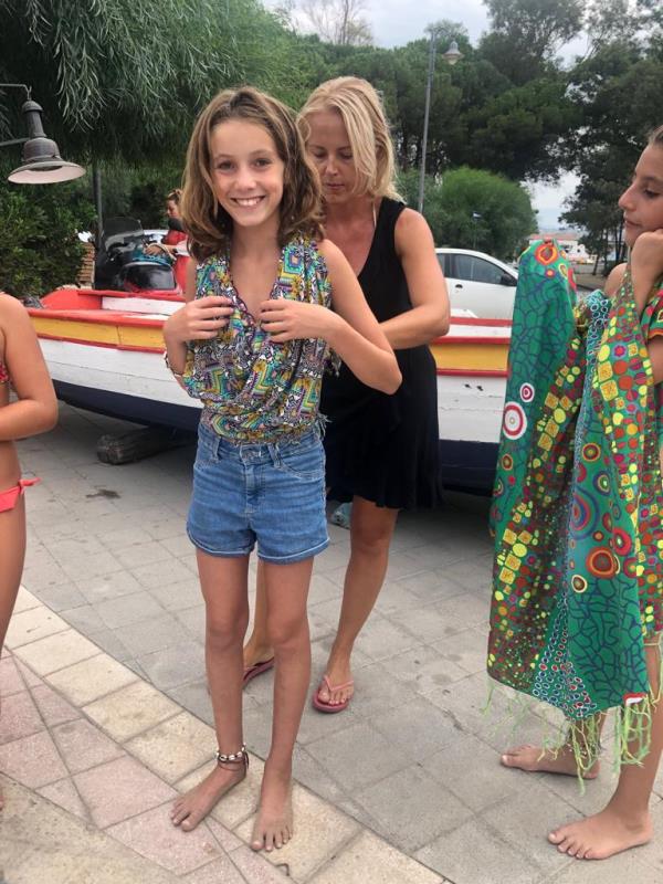 A conquistare la scena è stato il coreografo Francesco Piro, salito per primo sul palco improvvisato in un angolo del lido per affidarsi alle mani esperte della "maestra" che ha creato per lui un tipico pantalone polinesiano.