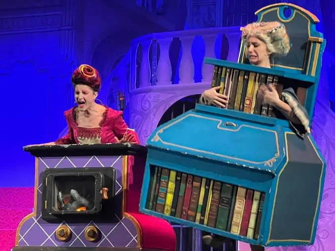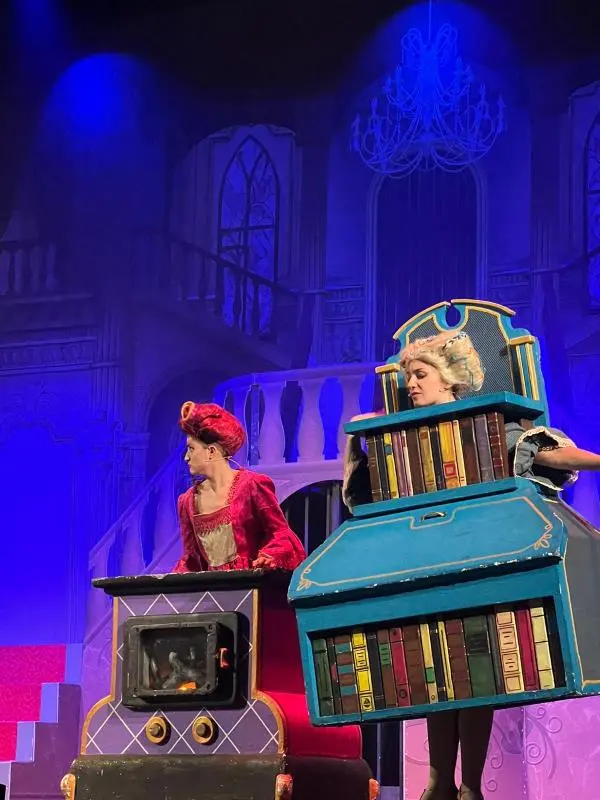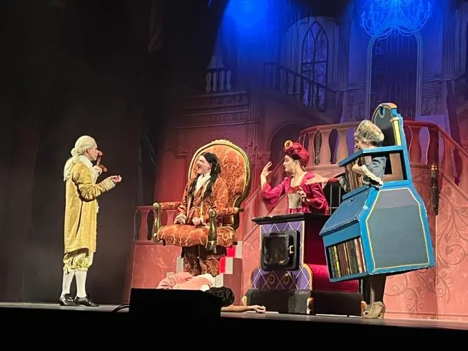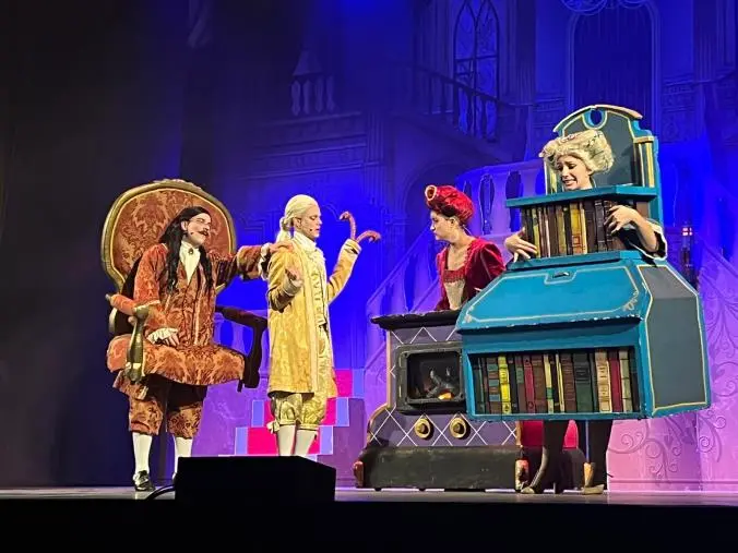 La compagnia, dinamica e brillante, si muove con verve tra fondali di scena ripetutamente cambiati. Grottesche e divertenti sono le costruzioni di falegnameria indossate dai servitori del principe, i quali, diventano, di volta in volta, poltrona, scrittoio, appendiabiti, specchiera … in un gioco divertente di prosa, danza e canzone che ha strappato il sorriso ai grandi e ai pochi piccini. Una favola dalla lunga vita - celebre la trasposizione cinematografica di Walt Disney - che rafforza la veridicità della locuzione latina: omnia vincit amor (l’amore vince ogni cosa).