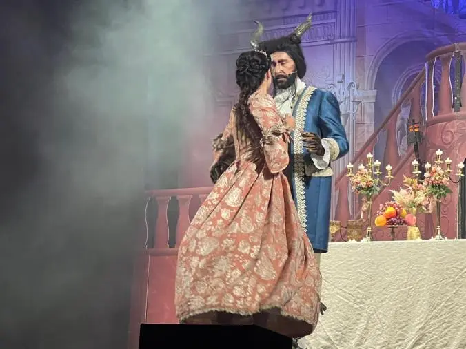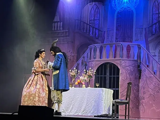 Il musical - Produzione Compagnia dell’Ora – prende due ore di spettacolo e intrattiene piacevolmente il pubblico, tra musica, danza e ambientazioni ottocentesche. La storia è quella celeberrima del principe costretto in un terribile sortilegio, divenuto peloso e brutto tanto da somigliare a un a bestia e che, grazie all’amore di una donna, Belle- principessa dimenticata pure coinvolta nel maleficio - rotto l’incantesimo, ritorna alla condizione di uomo coronando con quest’ultima la bella storia d’amore.