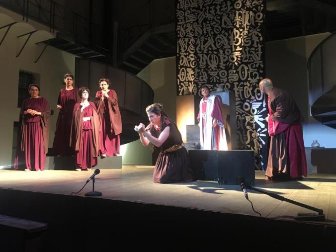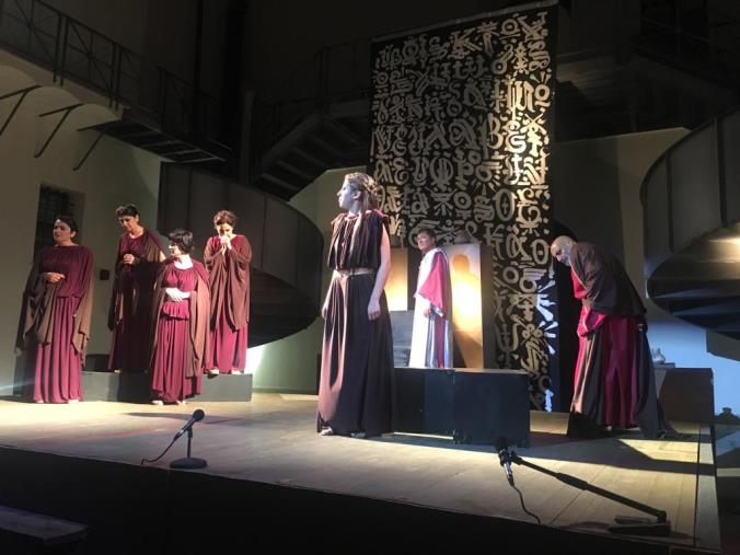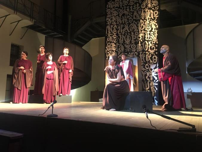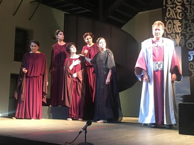 Il Teatro di Calabria "Aroldo Tieri" ha vinto la sfida ancora una volta. La giovane Antigone (Mariarita Albanese), incarnazione della disobbedienza e di una quite ribellione, è la pietà personificata. E' lei che apre la scena con il Nunzio (Salvatore Venuto). Sullo sfondo le luci dell'alba illuminano la città di Tebe. Figlia delle nozze incestuose tra Edipo e Giocasta , si aggira all'esterno della reggia in preda al tormento. I suoi fratelli Eteocle e Polinice si sono uccisi per la lotta del trono di Tebe e solo Creonte (Paolo Formoso) potrà decidere se rendere i giusti onori ai due corpi. Eteocle, che ha lottato per la difesa della città, li avrà. Non così per Polinice "il traditore". Ma lei, Antigone sfiderà le leggi del comando e per questo sarà condannata . A nulla varranno le suppliche di Emone (Bunty Andrea Giudice, figlio di Creone e promesso sposo di Antigone, quelle dei cittadini di Tebe (Alessandra Macchionni, Marta Parise, Annamaria Corea, Antonella Rotundo) e le profezie di Tiresia (Aldo Conforto). Perché, alla fine, la disgrazia colpirà la famiglia di Creonte che verrà punito per il suo cieco rigore e la sua stoltezza.