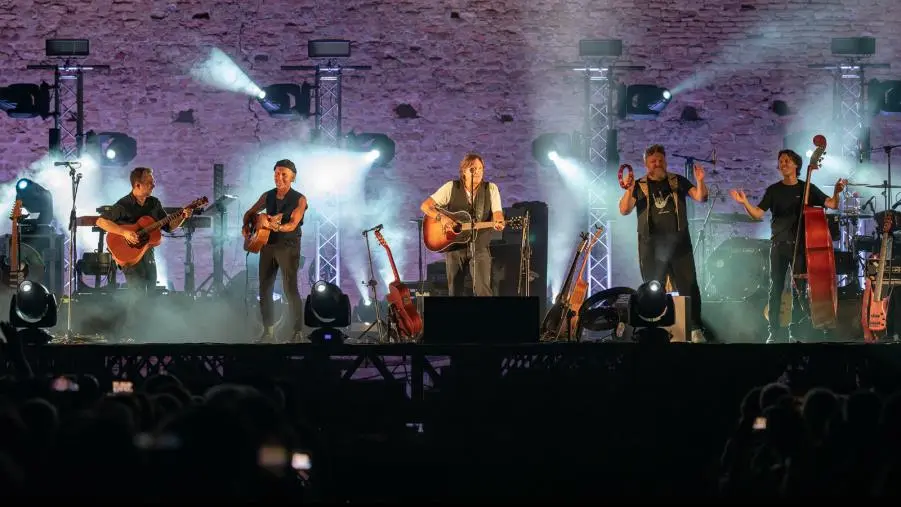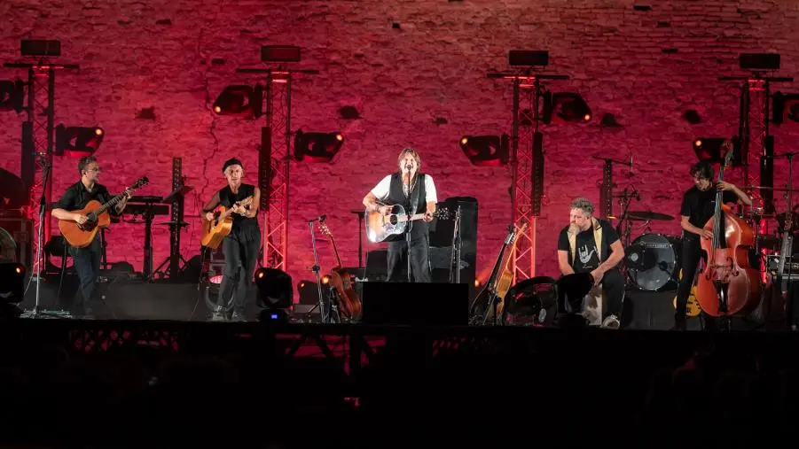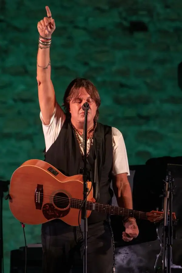 Serata in assoluto stato di grazia ieri sera al Parco Scolacium, dove nella sezione "Off & Pop" di Armonie d'Arte Festival, si è esibito al massimo del suo (stratosferico) potenziale di abilità, Cristiano De Andrè. Inutile lo spreco di superlativi per ciò che continua a rappresentare la poetica del padre, una delle menti più amate, lucide ma anche scomode della nostra canzone d'autore, ancora amatissimo da generazioni trasversali, che non mancano mai l'appuntamento con le esecuzioni dal vivo di questi brani che sembrano aumentare la propria luce nel tempo, acquisendo nuovi, appassionati, sostenitori. Più utile spostare l'accento sulla forma perfettamente ritrovata di suo figlio Cristiano, che nel venticinquennale dalla scomparsa del padre, ha riunito intorno a sé un gruppo di eccellenti musicisti (Luciano Luisi, Osvaldo Di Dio, Davide Pezzin e Ivano Zanotti), per onorare al meglio quel DNA che ne costituisce la sua gabbia dorata.