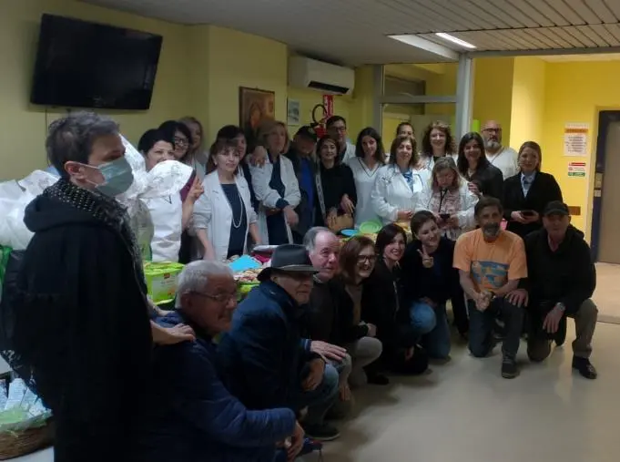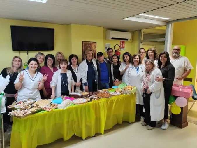 Riuscitissimo e molto partecipato l'evento "Buona Pasqua in oncologia" svoltosi questa mattina all'ospedale Giovanni Paolo II di Lamezia Terme. In una sala d'aspetto gremitissima, il personale del reparto con tutta l'equipe medica guidata dalla dottoressa Pina Molinaro insieme al personale infermieristico ed oss coordinato da Gina Primavera ha dato inizio alla festa tra sorrisi, foto di gruppo, banchetto con tanto di dolci e tante cose da mangiare. La sorpresa di questa stagione è stata la visita in reparto della Vigor Lamezia calcio che col suo presidente, Salvatore Rettura, il direttore sportivo Antonio Morelli ed il mister Rosario Salerno, hanno portato in reparto una rappresentanza della squadra per la gioia dei pazienti oncologici tifosi biancoverdi.