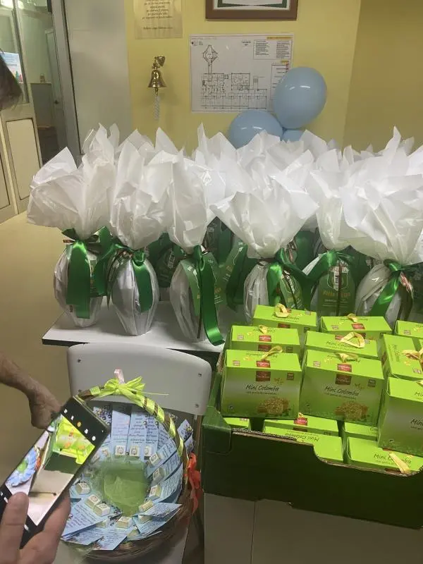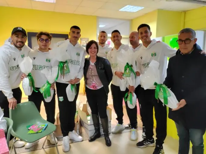 La società della Vigor Lamezia ha anche donato una trentina di uova al cioccolato marcate Vigor e distribuiti a tutti i degenti e pazienti del reparto. L' evento ha visto anche la partecipazione attiva dello scrittore Igor Colombo che ha fatto gli onori di casa alla squadra del suo cuore venuta a far visita ai malati oncologici. Momenti davvero emozionanti quelli vissuti oggi nel reparto oncologico, dove si sono visti pazienti sorridere prima di entrare nel Dh per la seduta di chemio-terapia. Si è poi passati alla fase del sorteggio per i premi messi in palio ai primi tre estratti. La mano fortunata quest'anno è stata quella di Francesco Marino, ex poliziotto e paziente oncologico. Due ceste con dolci pasquali per il terzo e secondo premiato, un uovo al cioccolato gigante per il primo. I vincitori tutte donne, una Pasqua in corsia dunque che si tinge di rosa anche se oggi i colori del reparto di oncologia erano diversi, un arcobaleno di felicità sui volti di medici, infermieri e pazienti, che hanno trascorso un'ora e più nello svago e nel divertimento più puro.