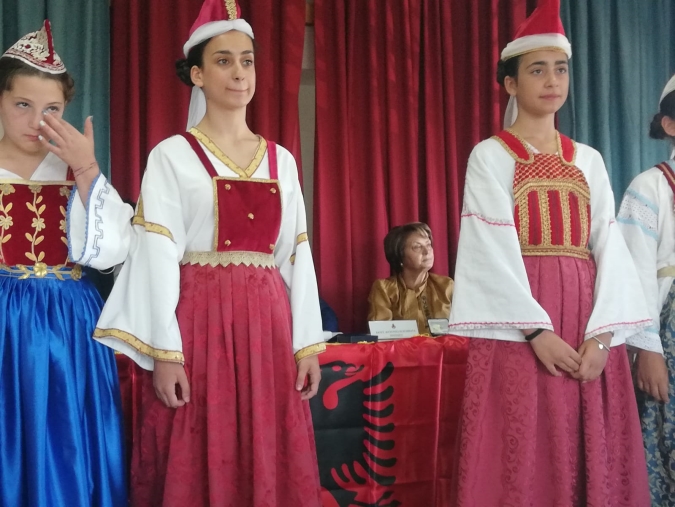 Ad inaugurare l’incontro, svoltosi presso una gremita sala del consiglio “A. Santo” del comune albanofono, l’inno albanese eseguito dalle ragazze del locale Istituto scolastico, seguito dall’inno della Rassegna Culturale folcloristica per la tutela delle minoranze etniche, manifestazione che ha reso famosa la professoressa Mazzei e la cittadina di Caraffa.