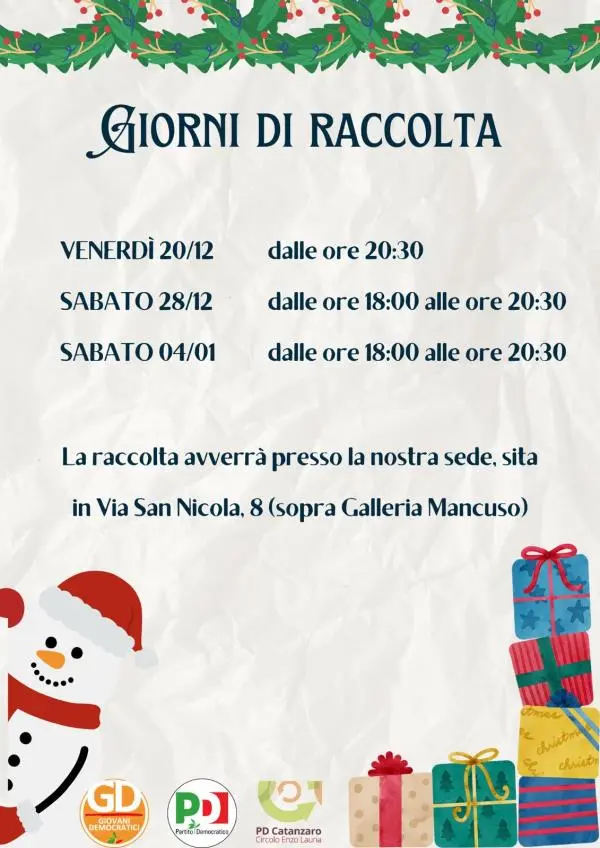 Il Circolo PD "E. Lauria" organizza la Raccolta di Natale per sostenere chi è in difficoltà.