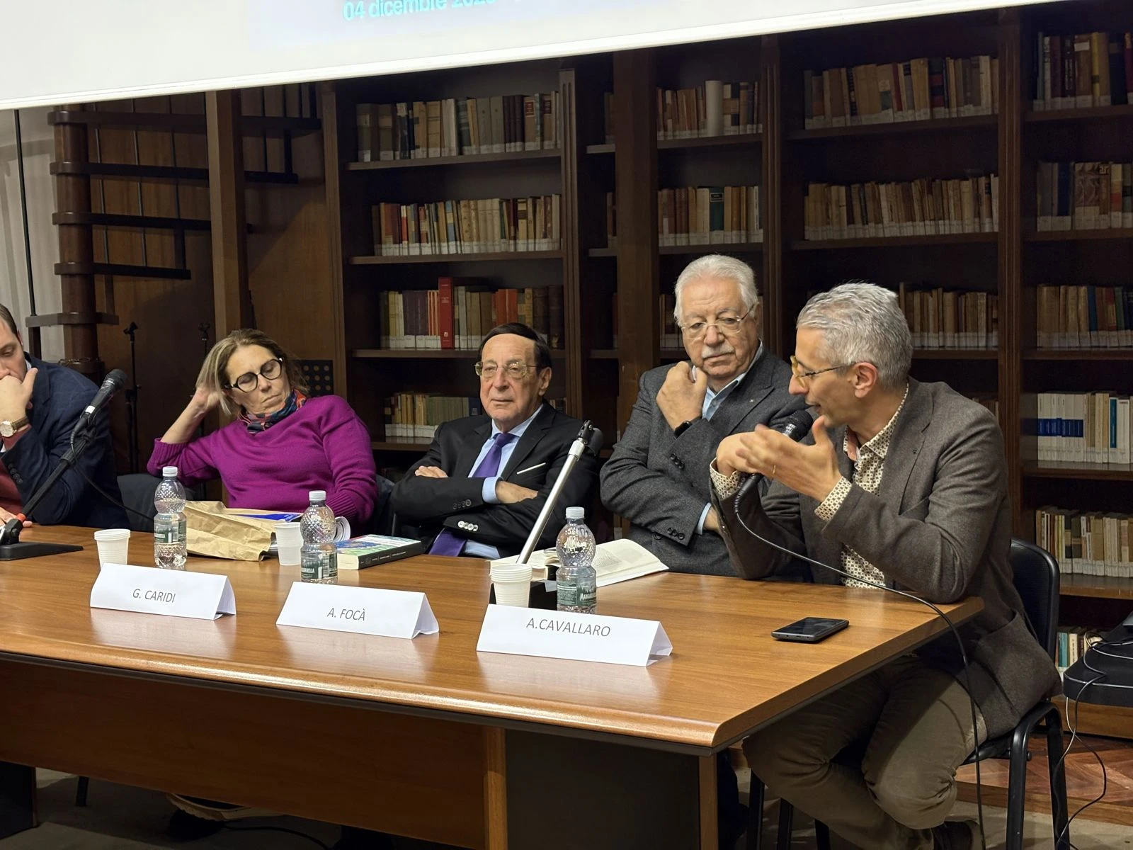 Il contesto offerto dal “Patto per la lettura”, sottoscritto nel 2024 da quarantaquattro realtà del territorio, ha fornito la cornice ideale a un appuntamento costruito attorno alla volontà di condividere strumenti culturali comuni. Dopo l’introduzione di Salvatore Bullotta, storico e capo di gabinetto del Comune, la presentazione si è articolata come una trama di osservazioni che hanno evidenziato la portata del lavoro di Caridi, autore di numerose monografie e figura di riferimento nella ricerca storiografica calabrese.