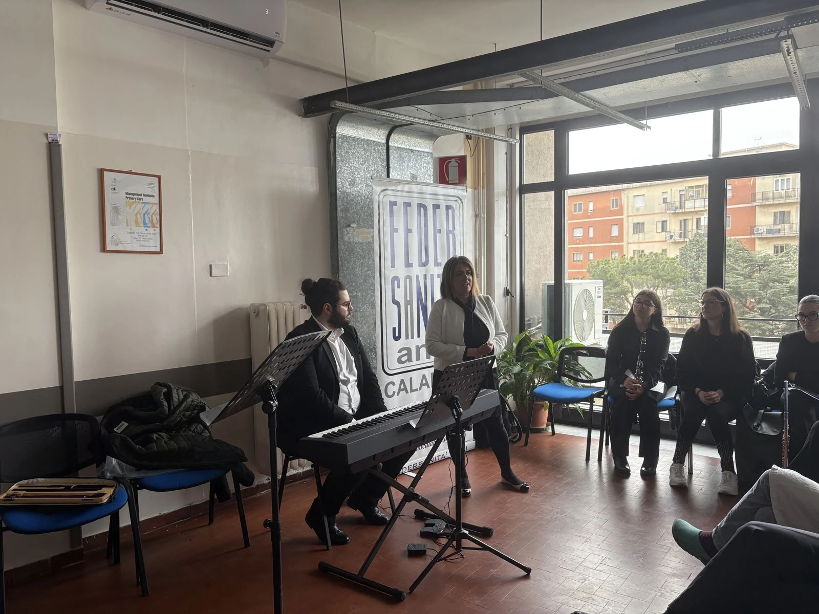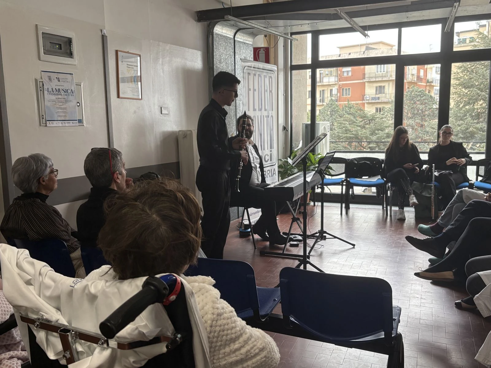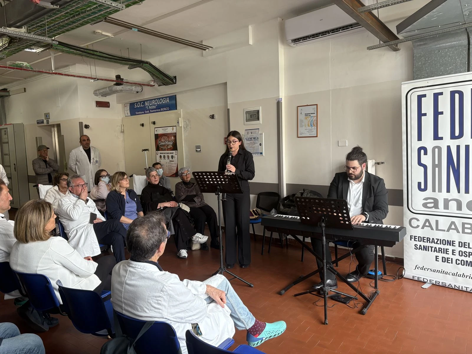 Può essere che il tempo, dentro un reparto di Neurologia, scorra con un ritmo tutto suo, scandito dai monitor e dalle attese silenziose dei familiari. Eppure, nel primo pomeriggio di lunedì, quel battito monocorde è stato interrotto dal respiro di un clarinetto e dal tocco vellutato di un pianoforte. Le note di “Pagina d’album” di Michele Mangani hanno iniziato a scivolare tra i corridoi del primo piano del Presidio “Pugliese”, trasformando l’atrio della scala A in un’insolita sala da concerto per l'evento “La musica, un’emozione che cura”. Non è stata solo un’esibizione, ma un atto di “umanizzazione delle cure” in piena regola, nato dalla sinergia tra Federsanità Anci Calabria e il Conservatorio Statale “Saverio Arlia”.