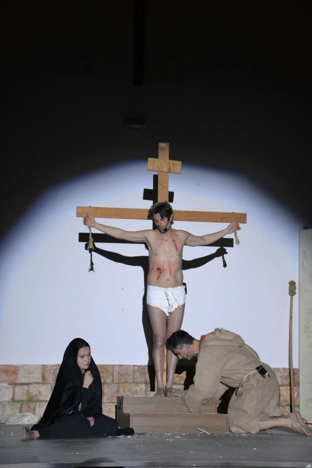 Di grande impatto anche l’omaggio a San Francesco d’Assisi, nell’ottocentenario della sua morte: una scena particolarmente suggestiva ha visto il Santo piangere davanti alla Passione di Cristo, abbracciando Gesù crocifisso e successivamente deposto tra le braccia di Maria. Sullo sfondo, la proiezione di immagini evocative ha raccontato le ferite del mondo contemporaneo: guerre, campi di sterminio nazisti, povertà, migrazioni, violenze di genere, bullismo, attentati mafiosi, inquinamento e altre gravi forme di sofferenza e ingiustizia.