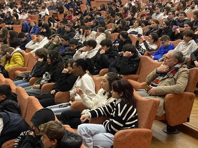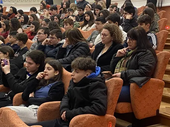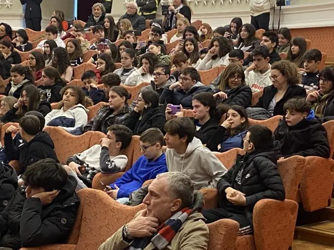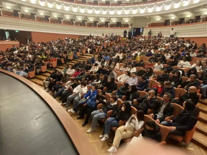 Gli studenti, provenienti dagli istituti comprensivi dei territori che hanno aderito alla “Carta dei Comuni”, nell’ambito delle attività mirate a fare del Politeama un grande aggregatore sociale e culturale attorno a cui costruire la crescita di tutta la comunità, hanno occupato quasi tutti i posti della platea e dei palchi del teatro.