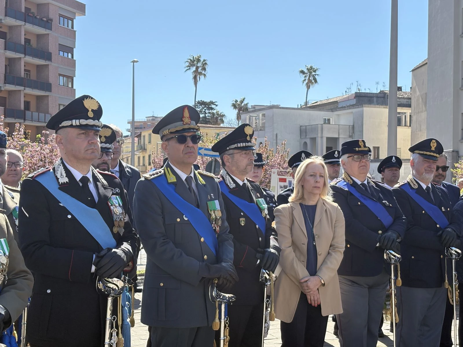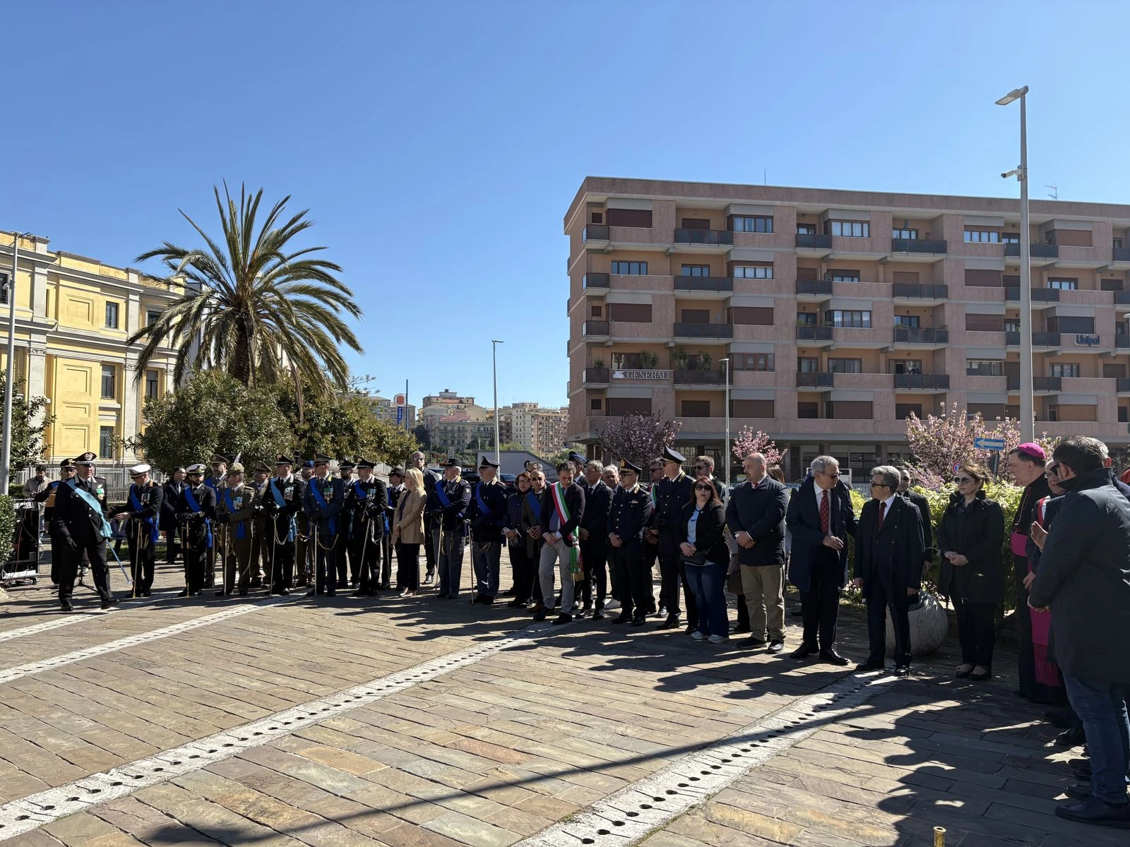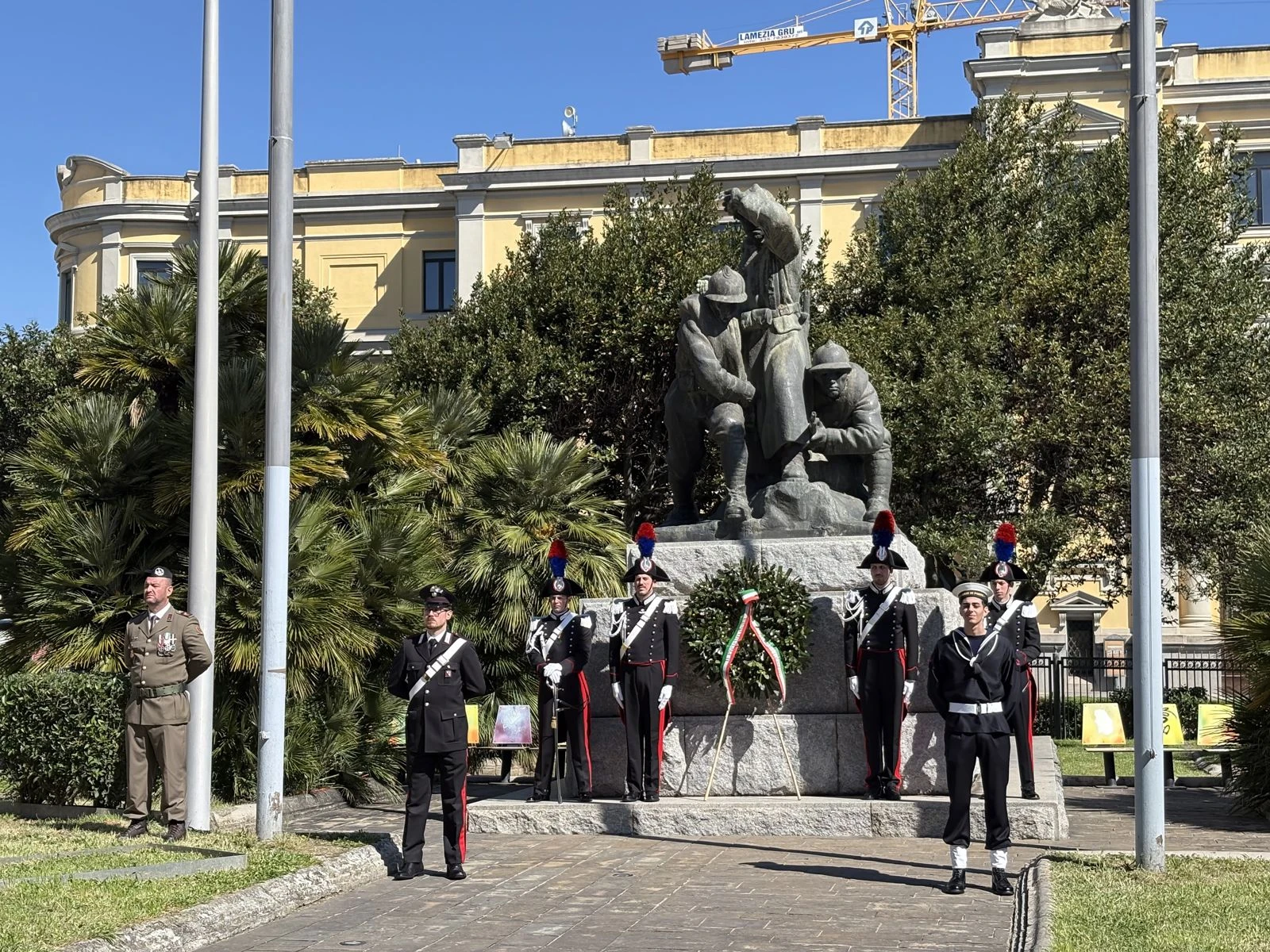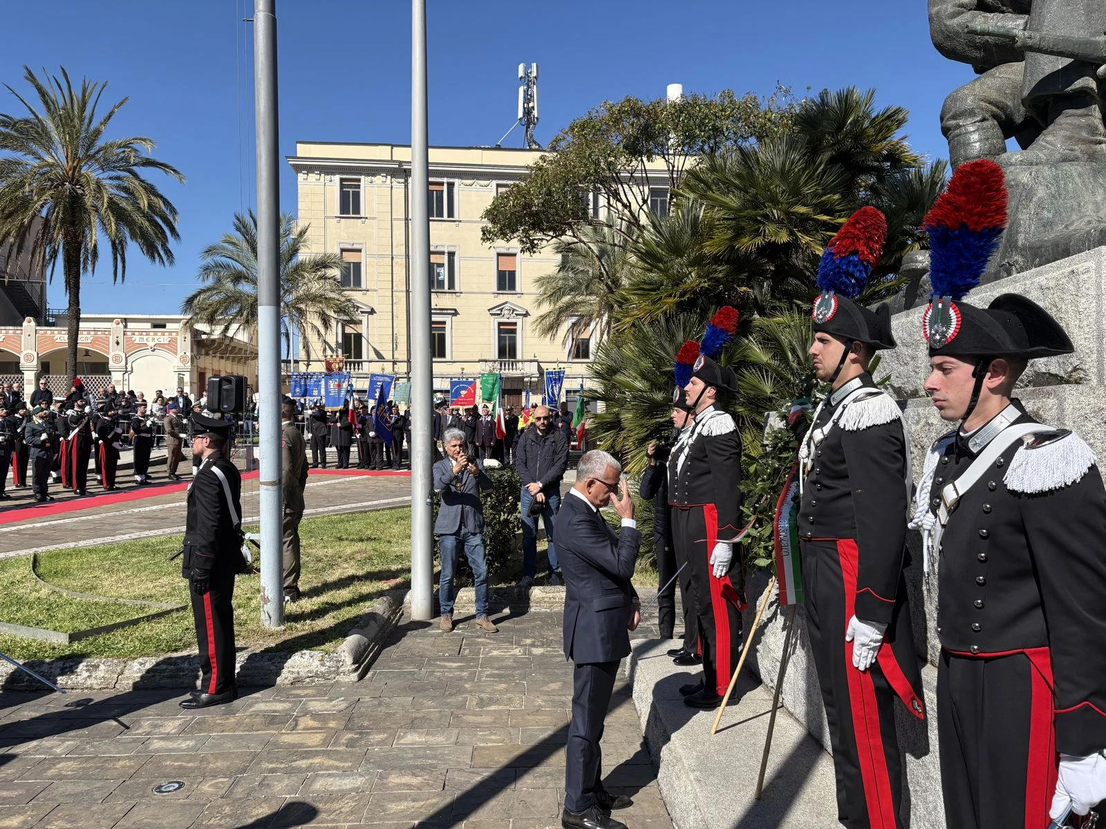 Il cerimoniale ha seguito il passo dei plotoni interforze e l’ingresso dei Gonfaloni, ma il battito della piazza è cambiato quando il Prefetto Castrese De Rosa ha deposto la corona d’alloro ai piedi del Monumento ai Caduti. Al suo fianco, a onorare il marmo, il Comandante della Legione Carabinieri Calabria, in una blindatura istituzionale che ha dovuto fare a meno della Sottosegretaria all’Interno, Wanda Ferro. “Mi ha chiamato pochi minuti fa” — chiarisce subito De Rosa durante il suo intervento — “un’indisposizione la costringe a letto, ma ci teneva a farvi avere il suo saluto e la sua vicinanza”. Un’assenza fisica che non ha impedito al Sottosegretario di far sentire la propria presenza a quella che il Prefetto definisce una “parte integrante della sua identità”.