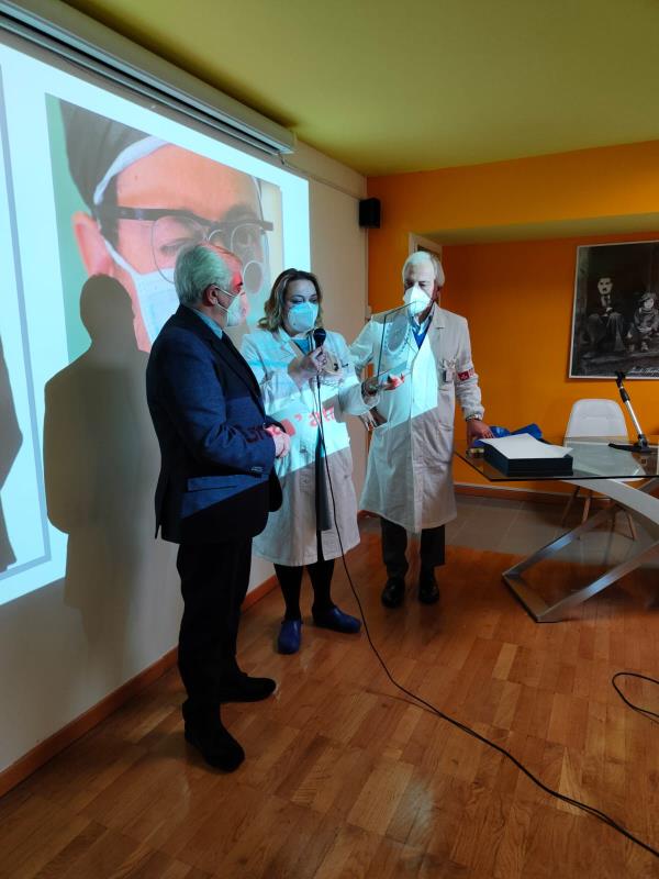 Nell’ambito di un Workshop sul Neuroblastoma, il Primario della SOC di Chirurgia Pediatrica, nonché Capo Dipartimento Materno – Infantile, dottor Domenico Salerno, ha consegnato a Vito Ferro una targa, un regalo ed una dedica in versi.