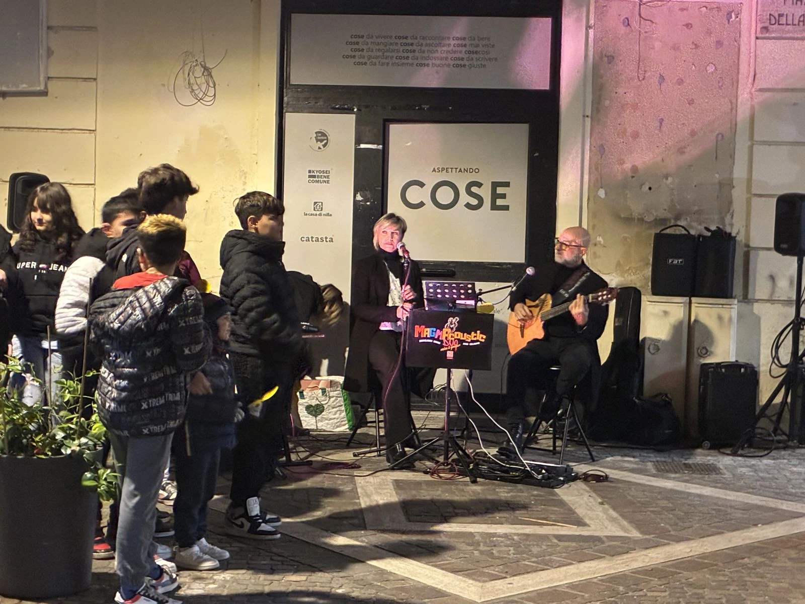 All’inaugurazione erano presenti il sindaco Nicola Fiorita insieme a gran parte della giunta comunale, la dirigente scolastica, Cinzia Emanuela De Luca, insegnanti, genitori e cittadini. A rendere ancora più suggestiva l’atmosfera, l’intervento musicale del duo magmacoustic, che ha accompagnato la serata con alcuni brani di Vasco Rossi, trasformando il vicolo in uno spazio di incontro, ascolto e partecipazione.