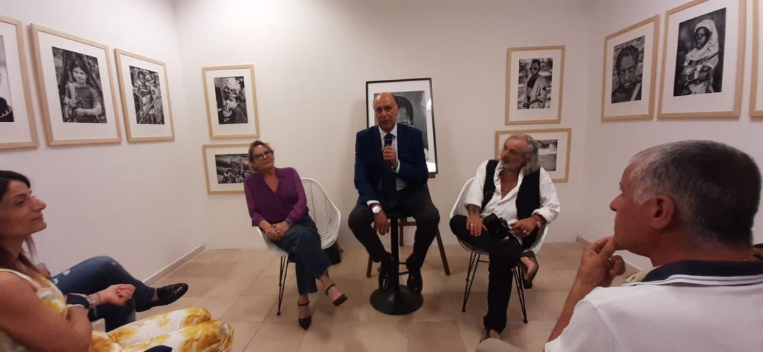 Pino Bertelli, accompagnato dal Dottore Francesco Mazza, ha incantato i presenti con le sue parole e con le sue immagini, frutto del noto lavoro: “Contro la guerra – Ritratti dall’infanzia negata”. Dal suo incontro con Pasolini, che nel consegnandoli quella che fu la sua prima macchina fotografica gli svelò la chiave della fotografia “ Fotografare con il cuore”, alle sue esperienze professionali e di vita profonde, passando per l’esposizione di un lavoro che porta con sé un messaggio dal valore inestimabile, quello del no ad ogni tipo di guerra.