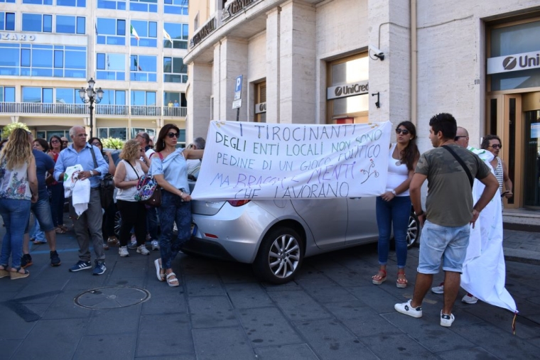 Chiedono stabilità e certezze i tirocinanti, ex percettori di mobilità in deroga, che oggi hanno manifestato in piazza Prefettura, a Catanzaro.