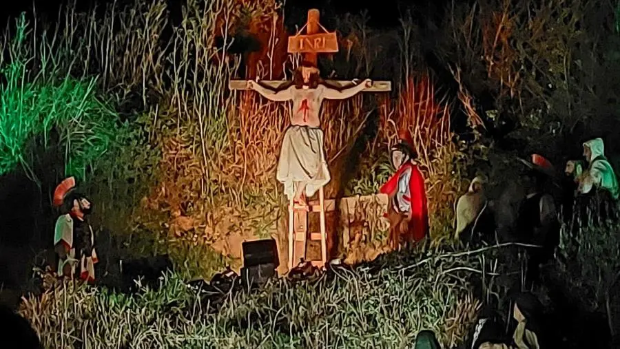 Al termine, su una collinetta appena fuori l’abitato, sono state erette tre croci sulle quali si è consumata la crocifissione del Cristo e dei due ladroni (Giangiuseppe Colacino e Mattia Colacino).